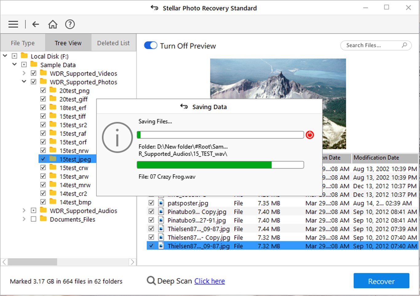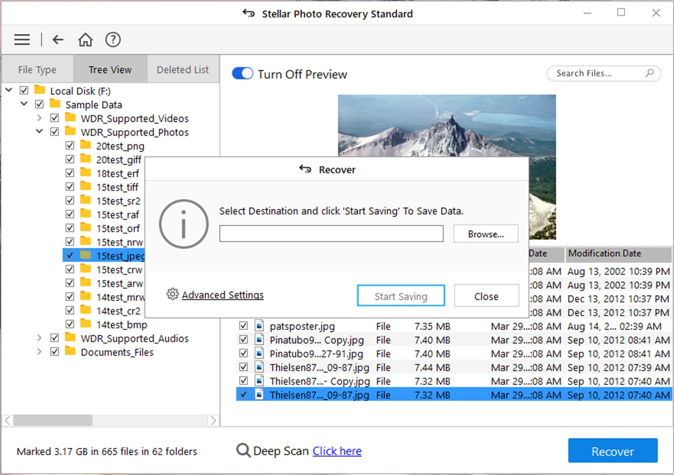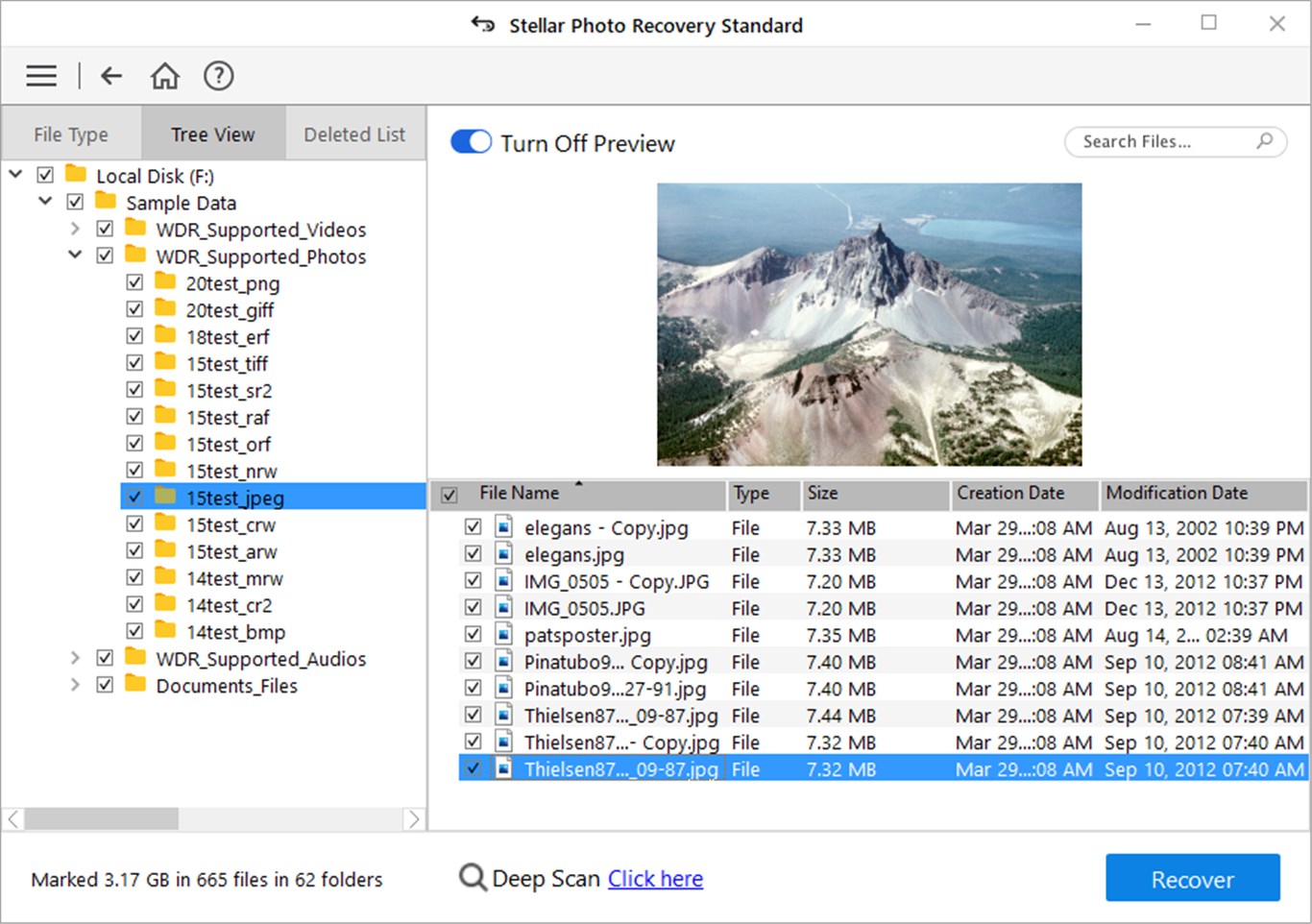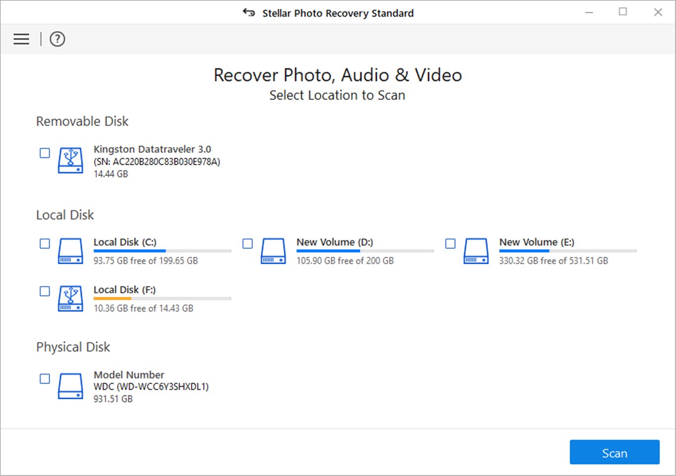 Stellar Photo Recovery can recover lost or deleted photos, videos, movies, songs, podcasts, etc. from corrupt, formatted, and encrypted hard drive, SD card, memory card, and other storage devices. The software restores photos and videos without affecting their original quality. It provides an option of recovering all or selective files basis their type. You can preview the recovered file before saving.
