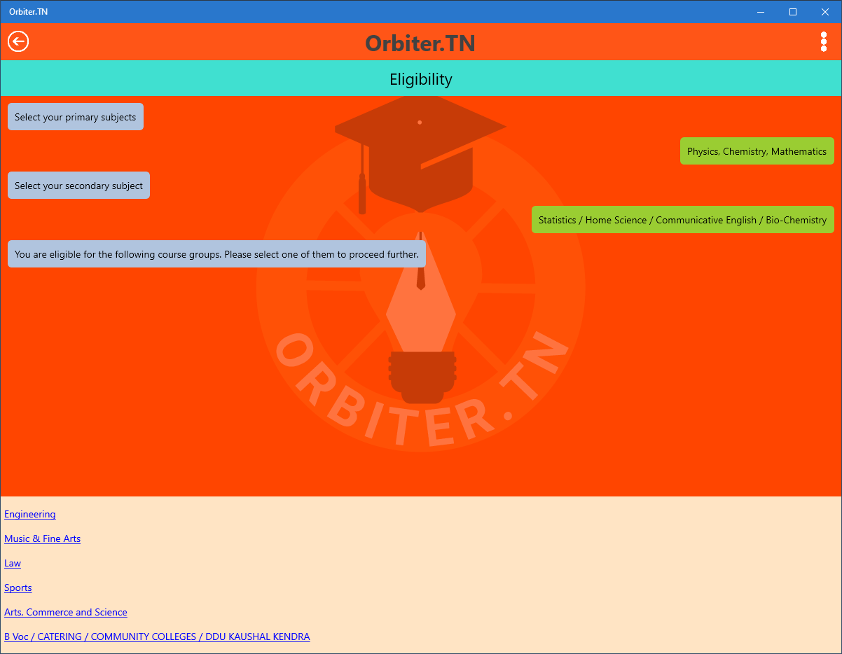 Excited to know the opportunities that match your Aim, Ambitions and Goals? Orbiter.TN is a gateway to check with your Plus Two subjects and groups