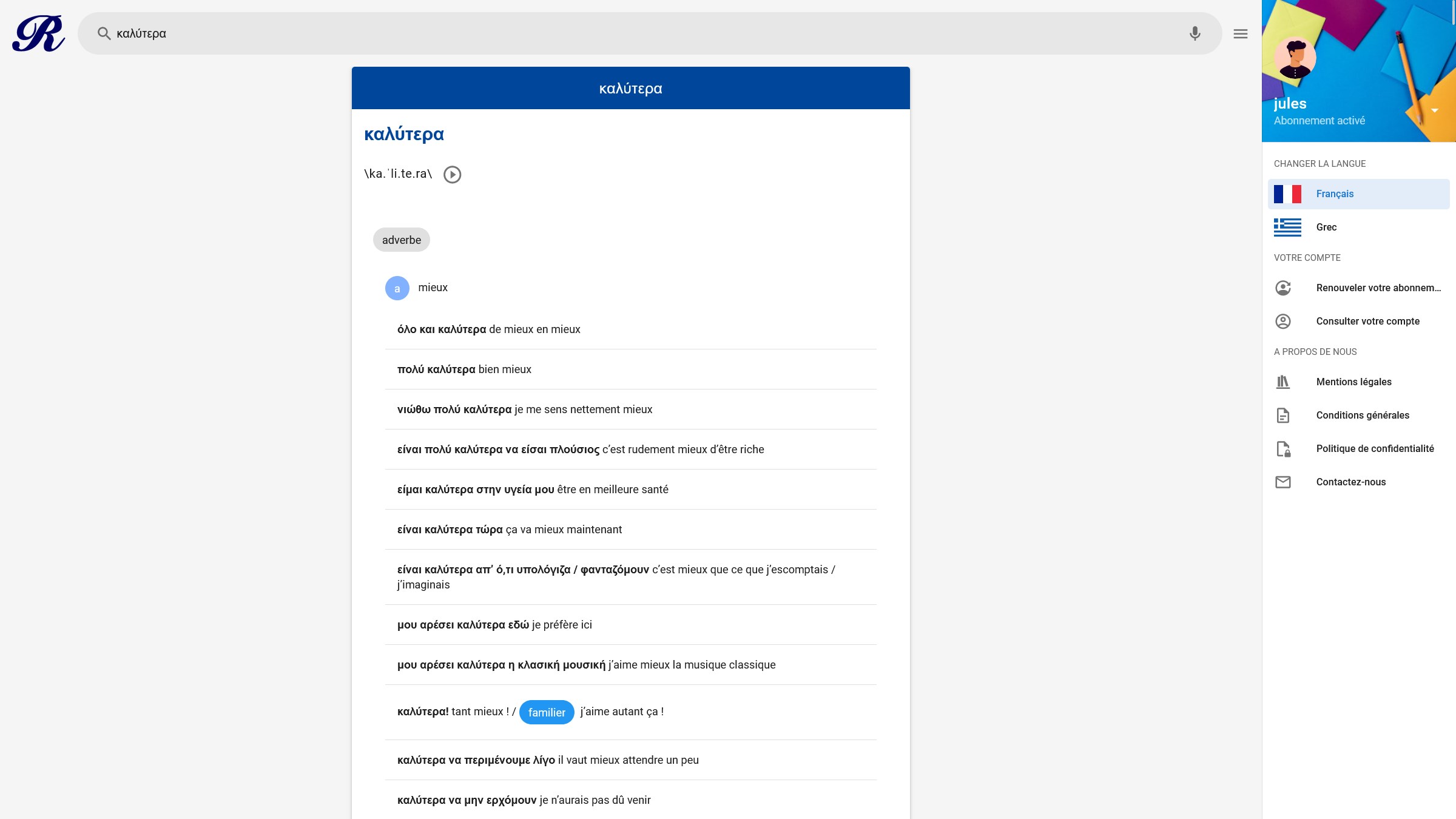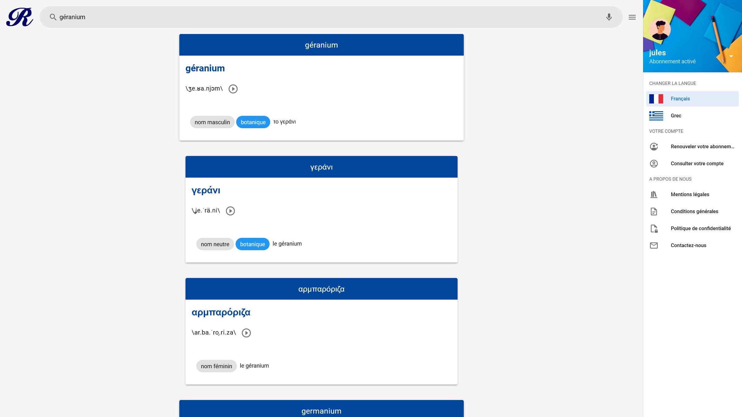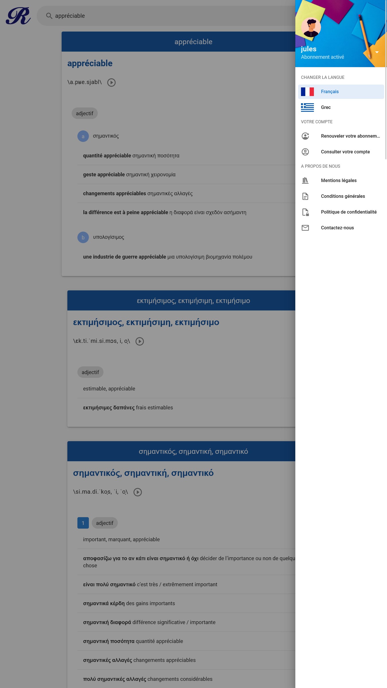 L'application permet aux lecteurs abonnés au dictionnaire de le consulter en ligne.