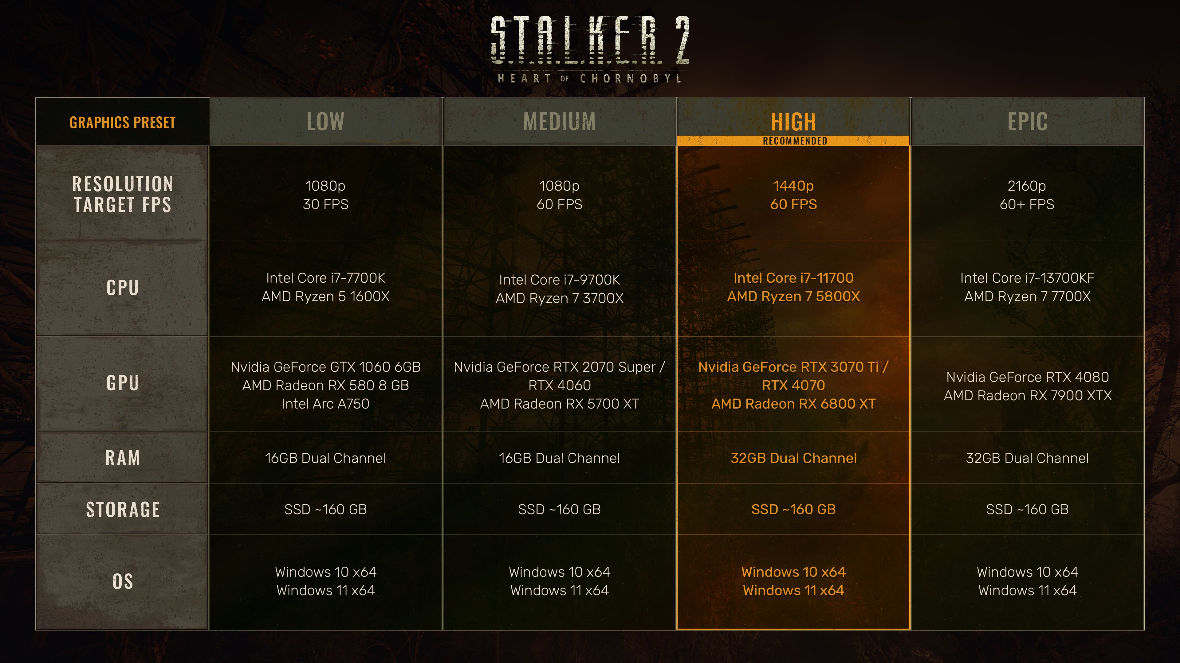 S.T.A.L.K.E.R. 2: Heart of Chornobyl is the unforgiving FPS survival adventure in a dark science-fiction open world. Scavenge for gear and resources, hunt for wonders, make hard decisions to survive and pave the path through the Chornobyl Anomalous Zone.