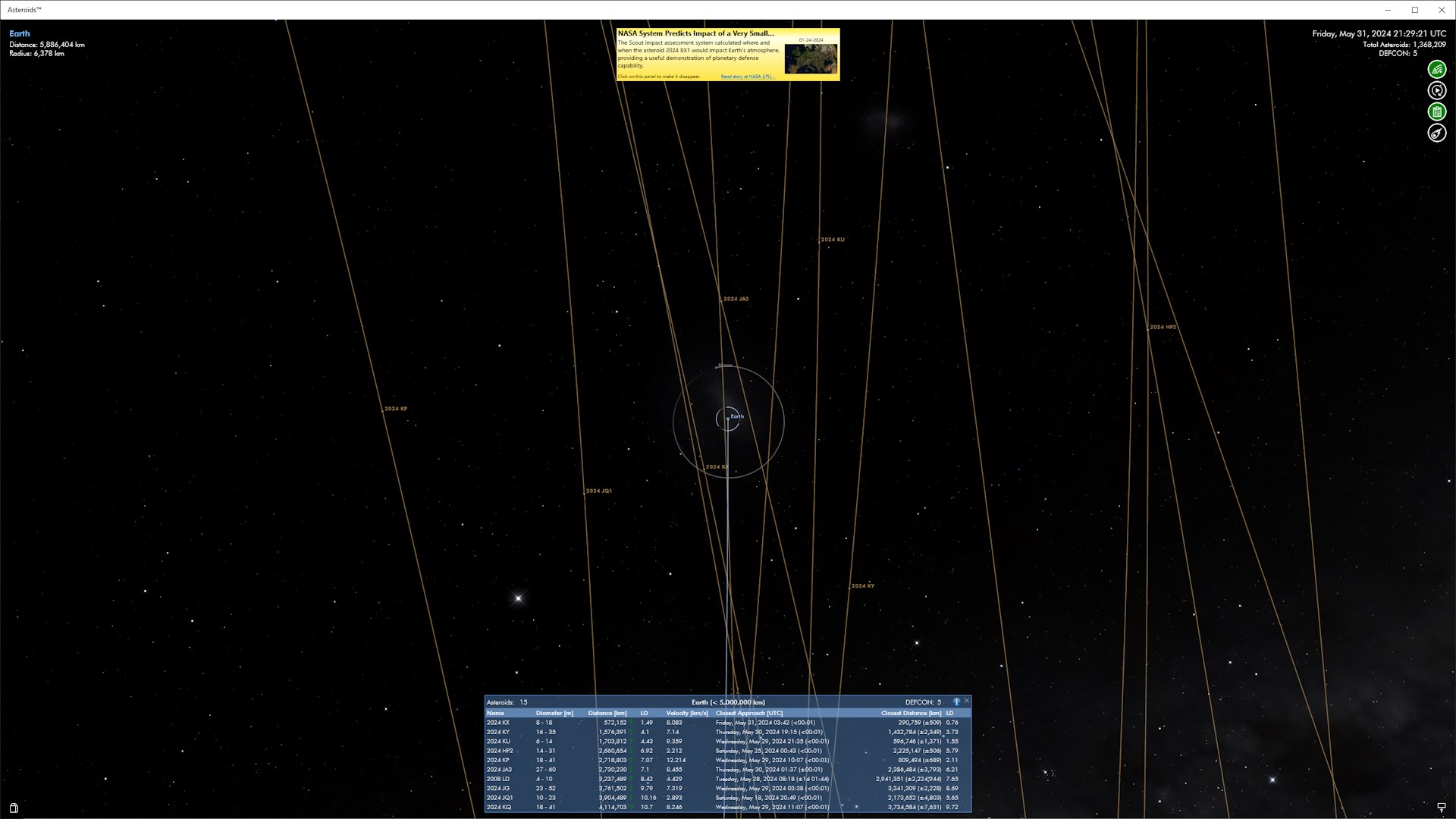 - Potential Asteroid Impactors News Ticker (see \'Assistant\' Tab)