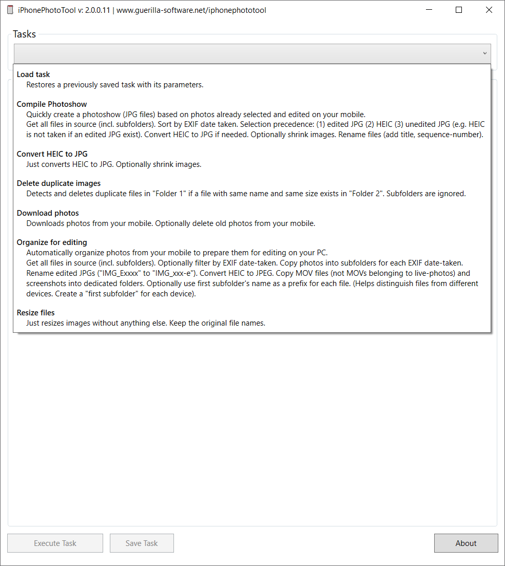 Download photos from your mobile to your PCConvert HEIC files to JPGResize imagesQuickly compile PhotoshowsOrganize files for better editing on your PC