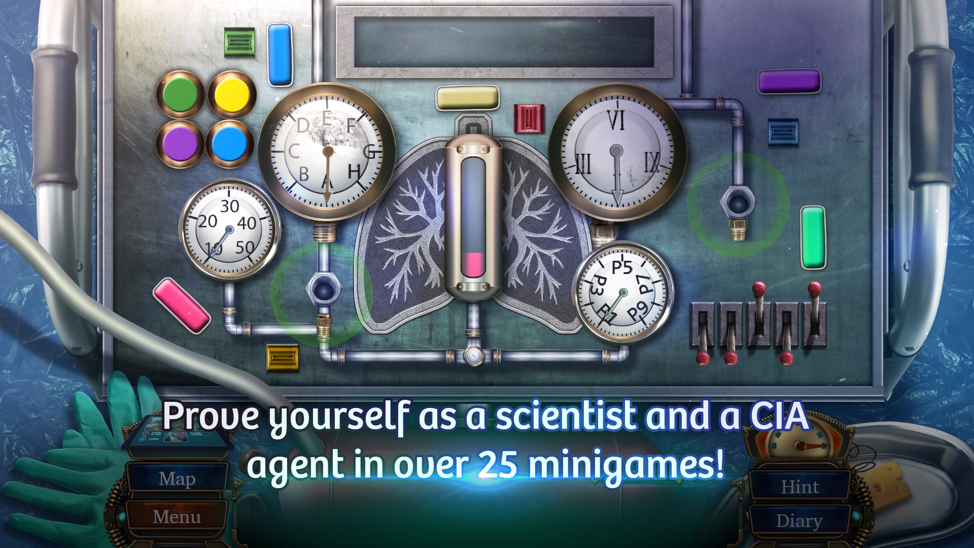 Jump into the gripping world of labs, spies and secrets!Prove yourself as a scientist and a CIA agent in over 25 minigames!Inspect the mysterious research facility visiting 30 locations!Hunt for abundance of hidden objects and collectables!Discover the cobwebbed family secrets in the Bonus Adventure!