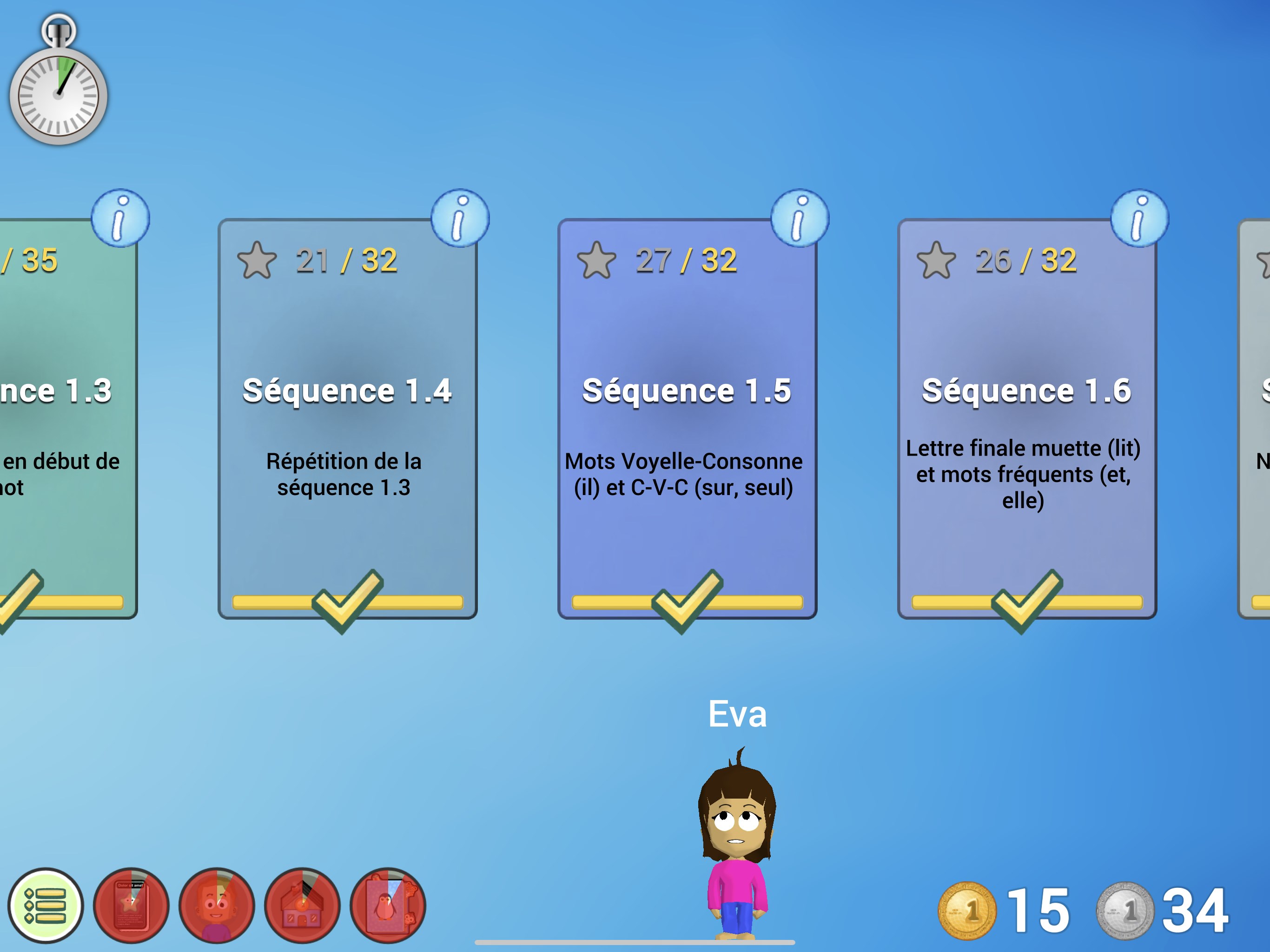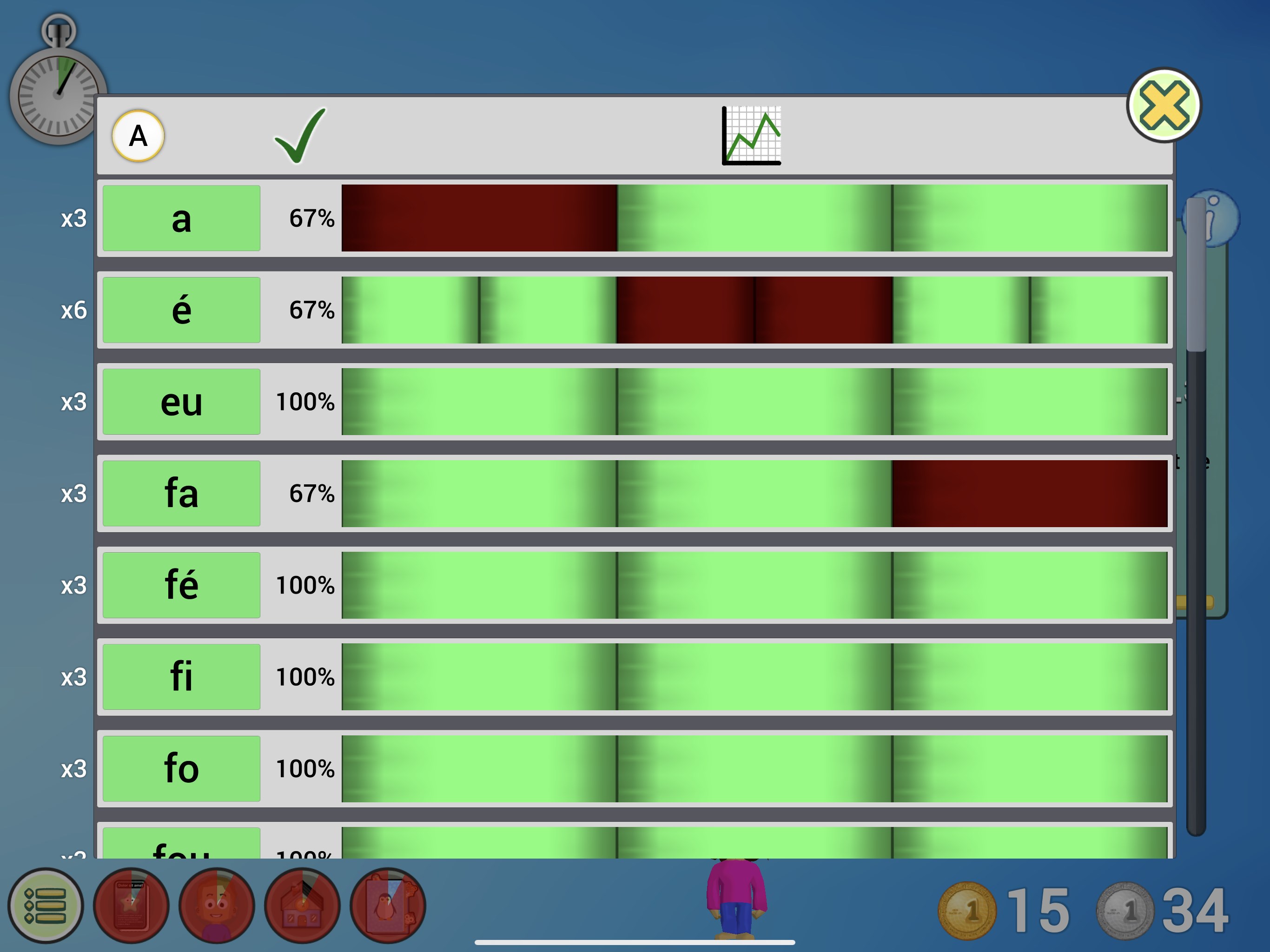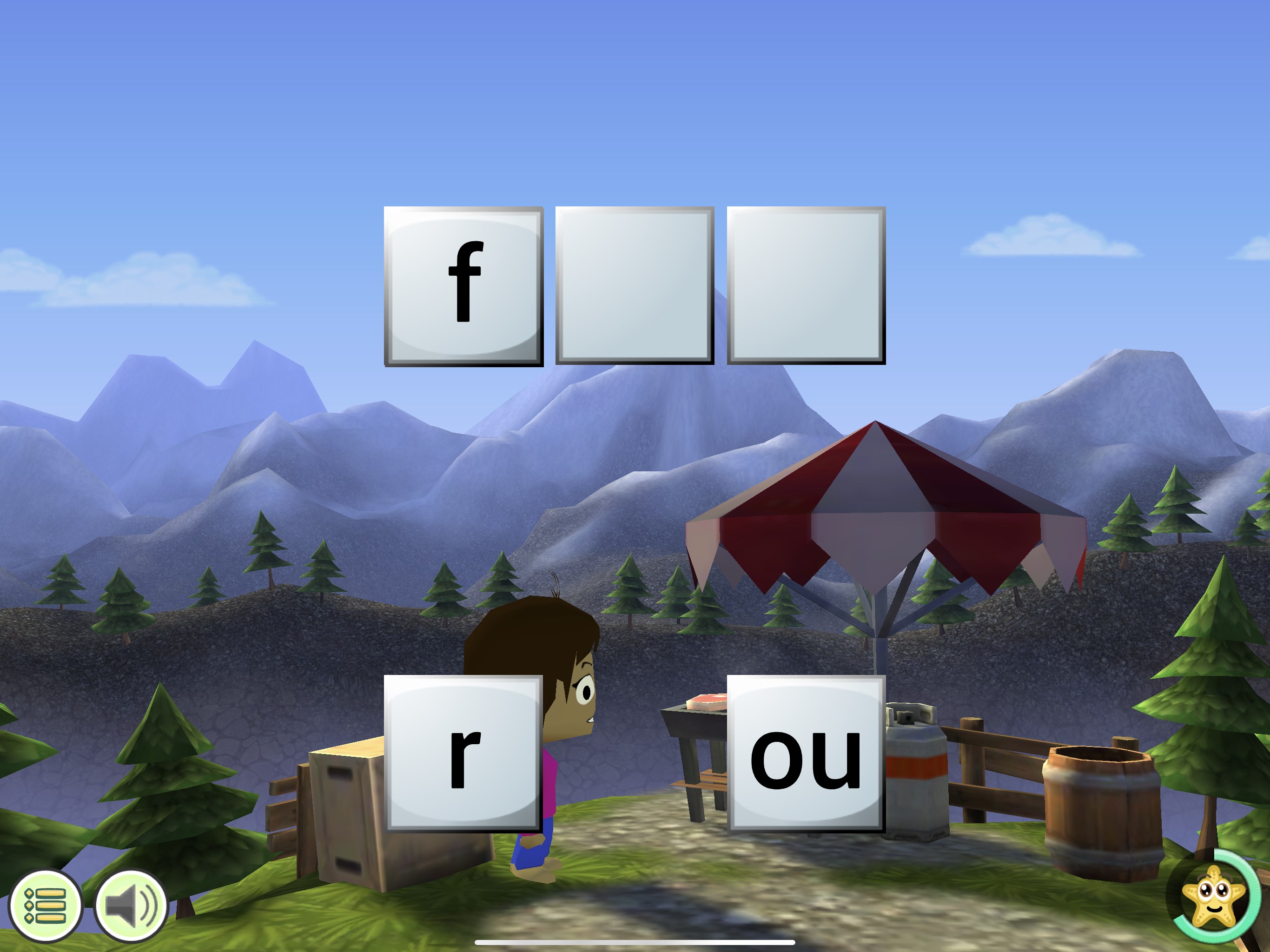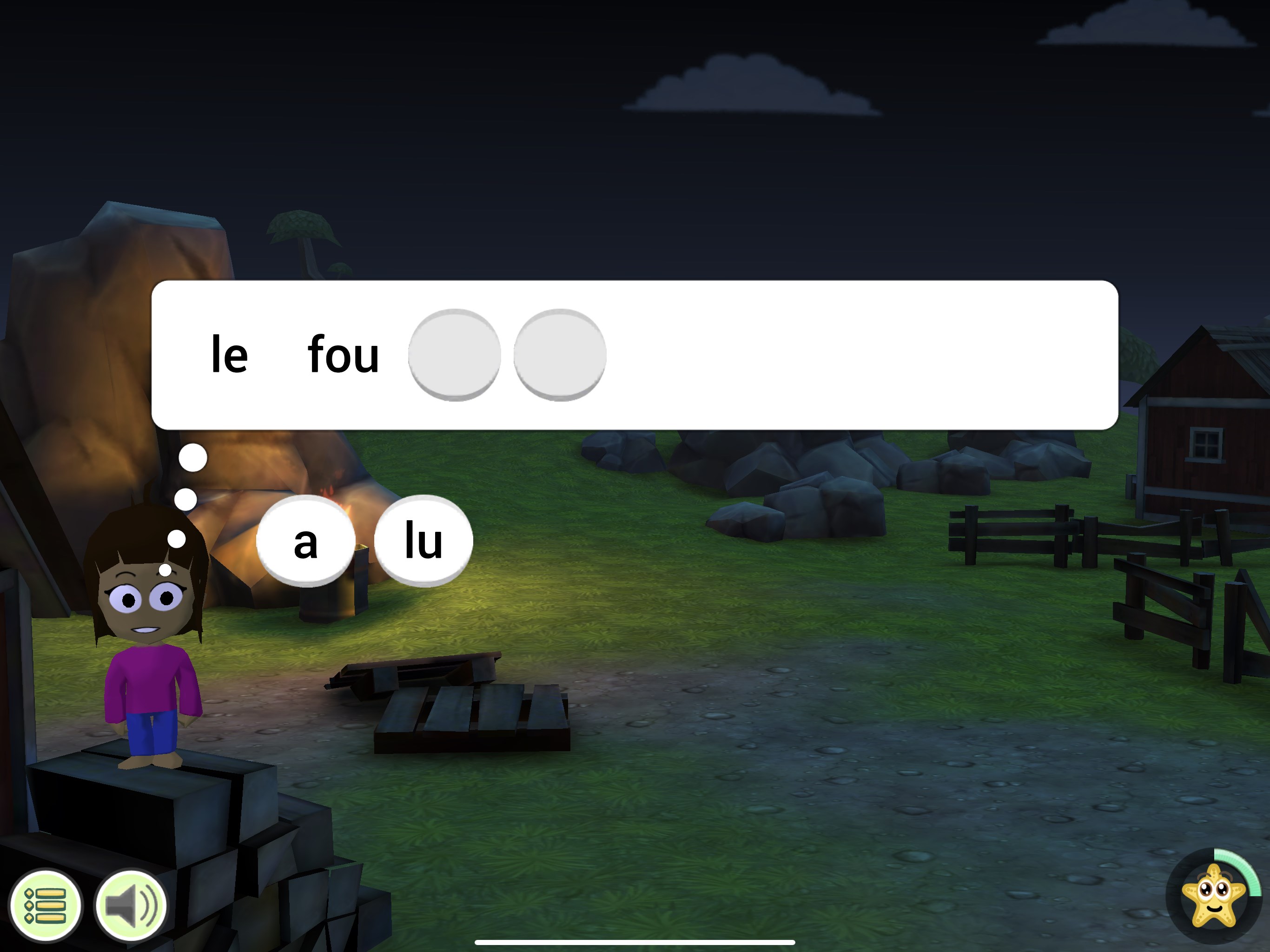 Ce jeu aide l’enfant à apprendre les sons des lettres et des groupes de lettres en présentant simultanément les sons (ou mots) correspondant et les groupes de lettres.
