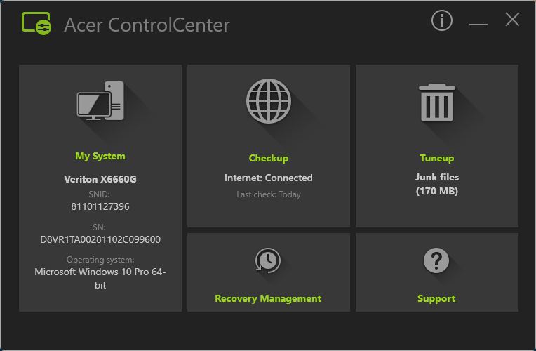 The Control Center S on your device links you to the Acer support structure that provides for all your support needs. Control Center S provides a full range of services, checks and updates to keep your device fresh and running smoothly.