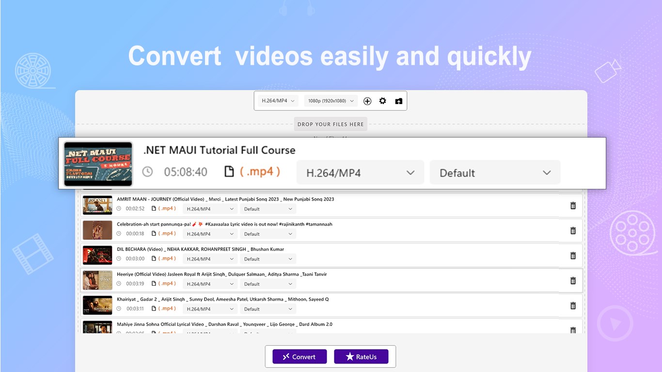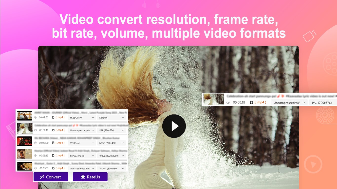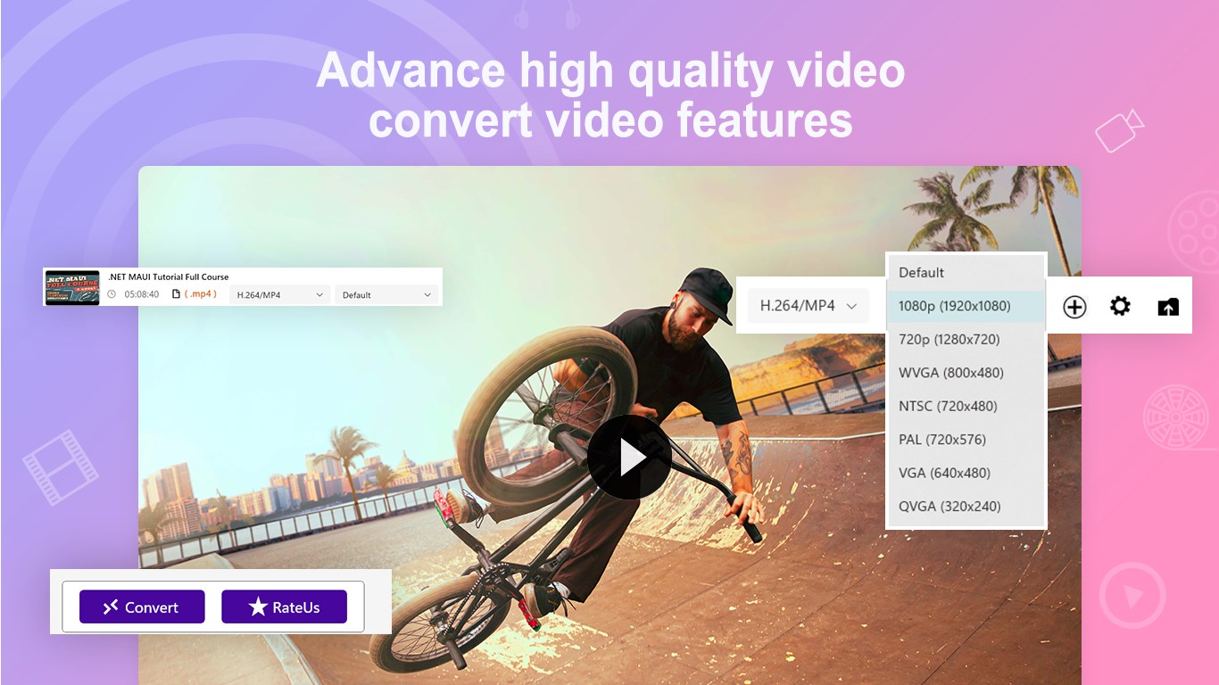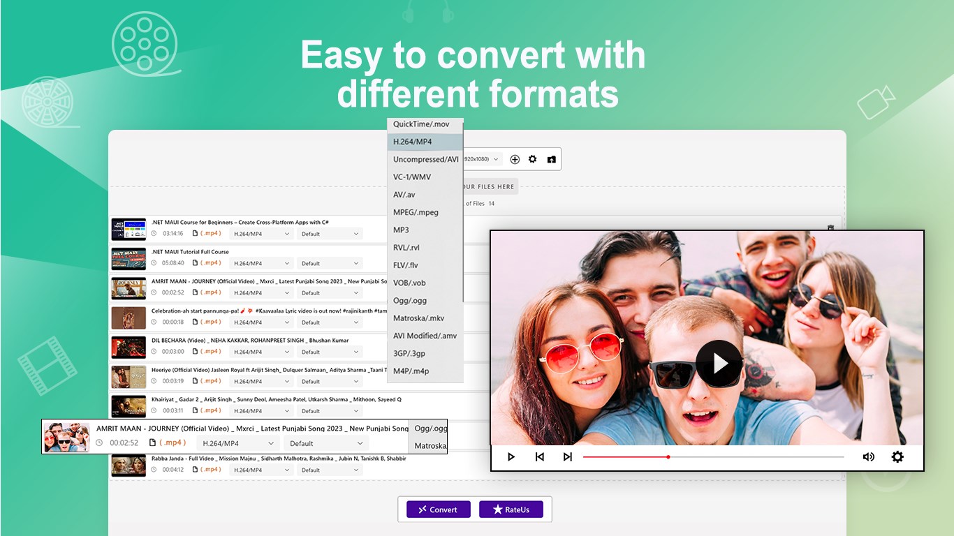 Perfect video converter in the Store that supports almost all video formats like .av, .rvl, .mp4, .m4p, .mov, .mkv, .wmv, .avi, .flv, .mpg, .mp2, .mpeg, .mpe, .m2v, .m4v, .3gp, .3g2, .amv, .vob, .ogg and more.