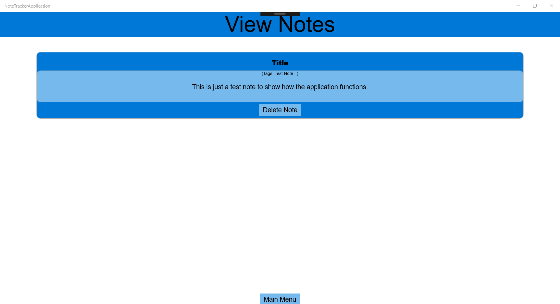 This application is a basic note tracker. You can create and delete notes, you can also search for a note by tag string.