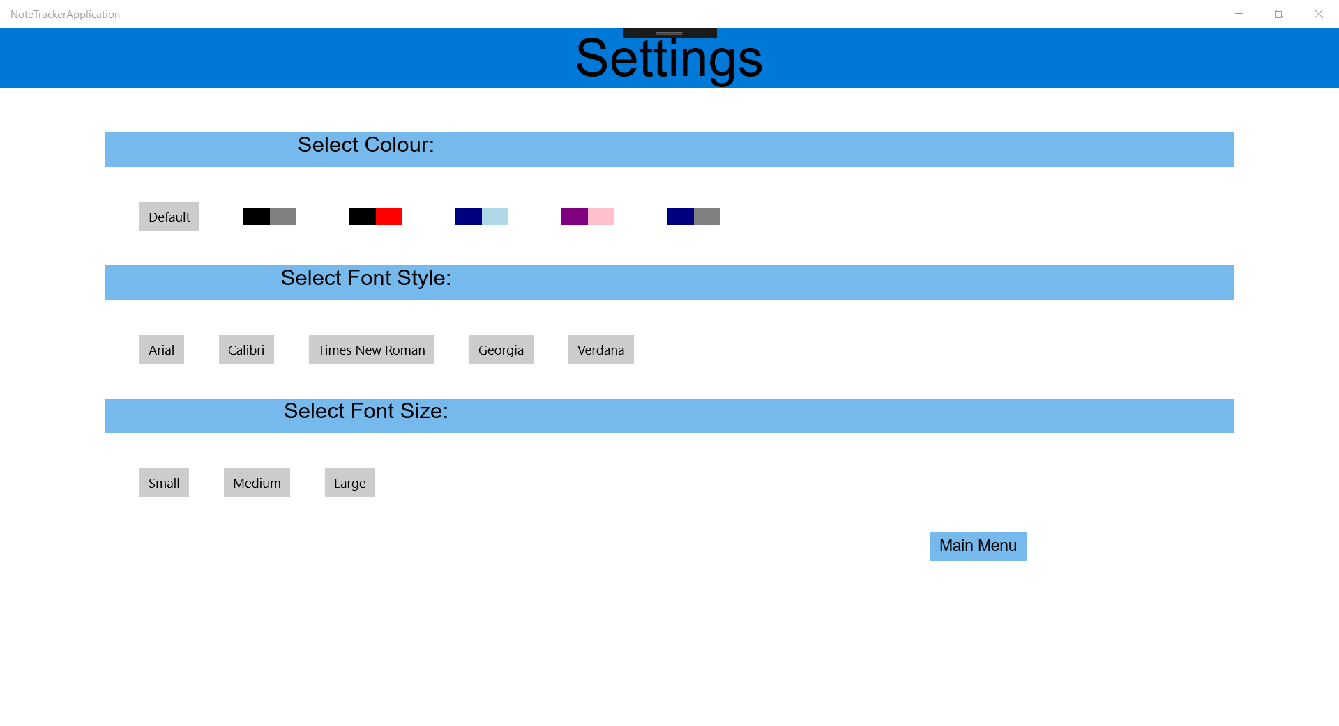 Create Notes.Delete Notes.Search Notes by Tag.Change Colour Scheme.Change Font Scheme.Save & Load Settings on Application Exit.