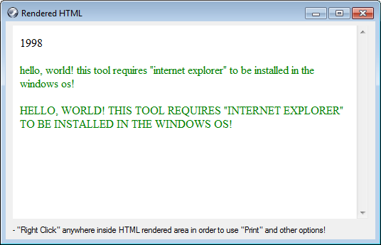 The tool can be used for multiple tasks such as calculations, automation, data manipulation, rendering output as HTML and much more ...!
