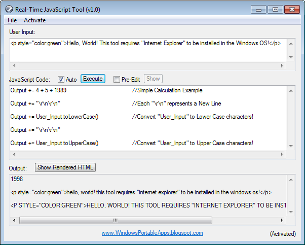 Real-Time JavaScript Tool is a tool that allows JavaScript codes to be executed in Real-Time!
