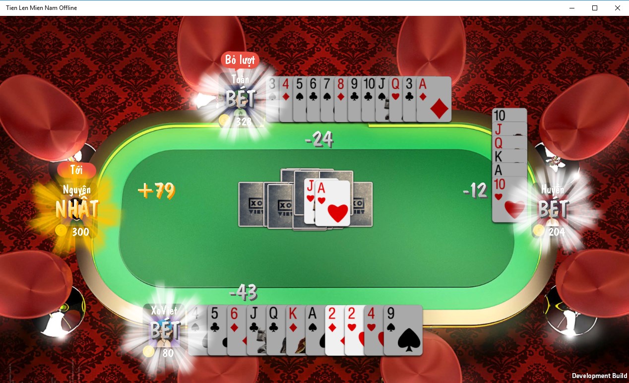 Thirteen - Tien Len Mien Nam (Tiến Lên) - Southern Poker Offline or Thirteen Cards is the popular free card game in Vietnam. In this game, you can play Tien Len offline without the network connection. A match of Thirteen Tien Len Xo Viet can play with 2 - 4 player. The No.1 Southern Poker game on Android, iOS, and UWP. With a smart computer, Tien Len Mien Nam Offline will help you to improve playing skill and become a professional player.