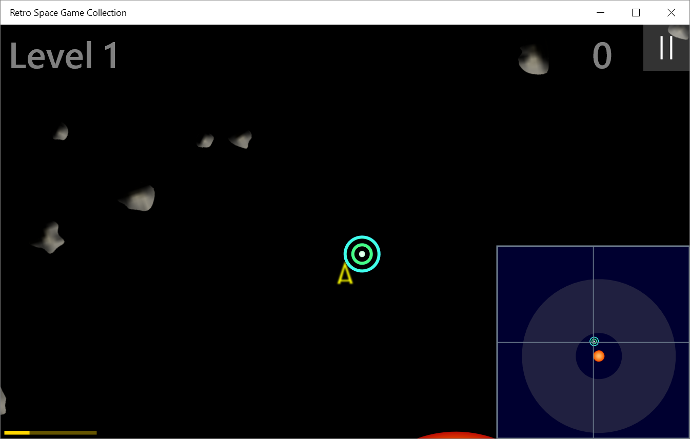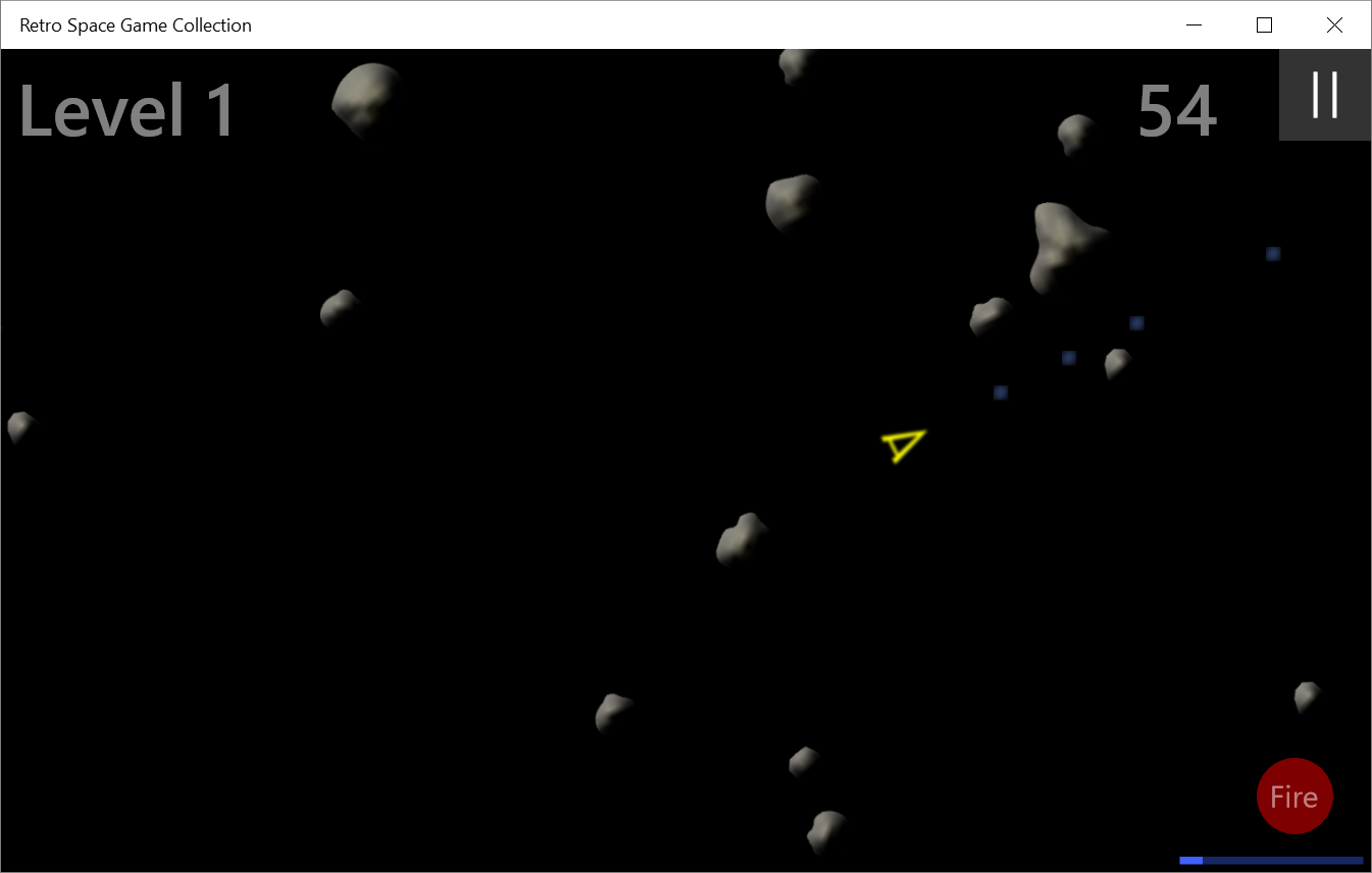 Asteroid Field: Shoot asteroids to clear each level and proceed to the next level. Similar to the classic Asteroids arcade game.