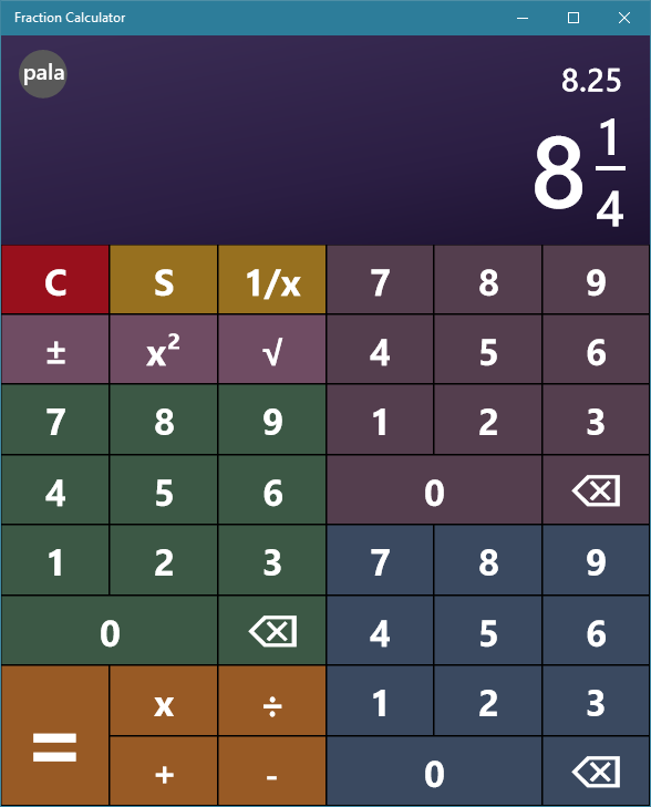 The Fraction Calculator feels and behaves exactly like a calculator with one exception, you're working with fractions. So now when homework (checking of course) calls for fractions, or your carpentry project needs you to add eighths and sixteenths dozens of times, or maybe you just want to be able to recalculate that dinner recipe to accommodate for five rather than two – turn to the Fraction Calculator.
