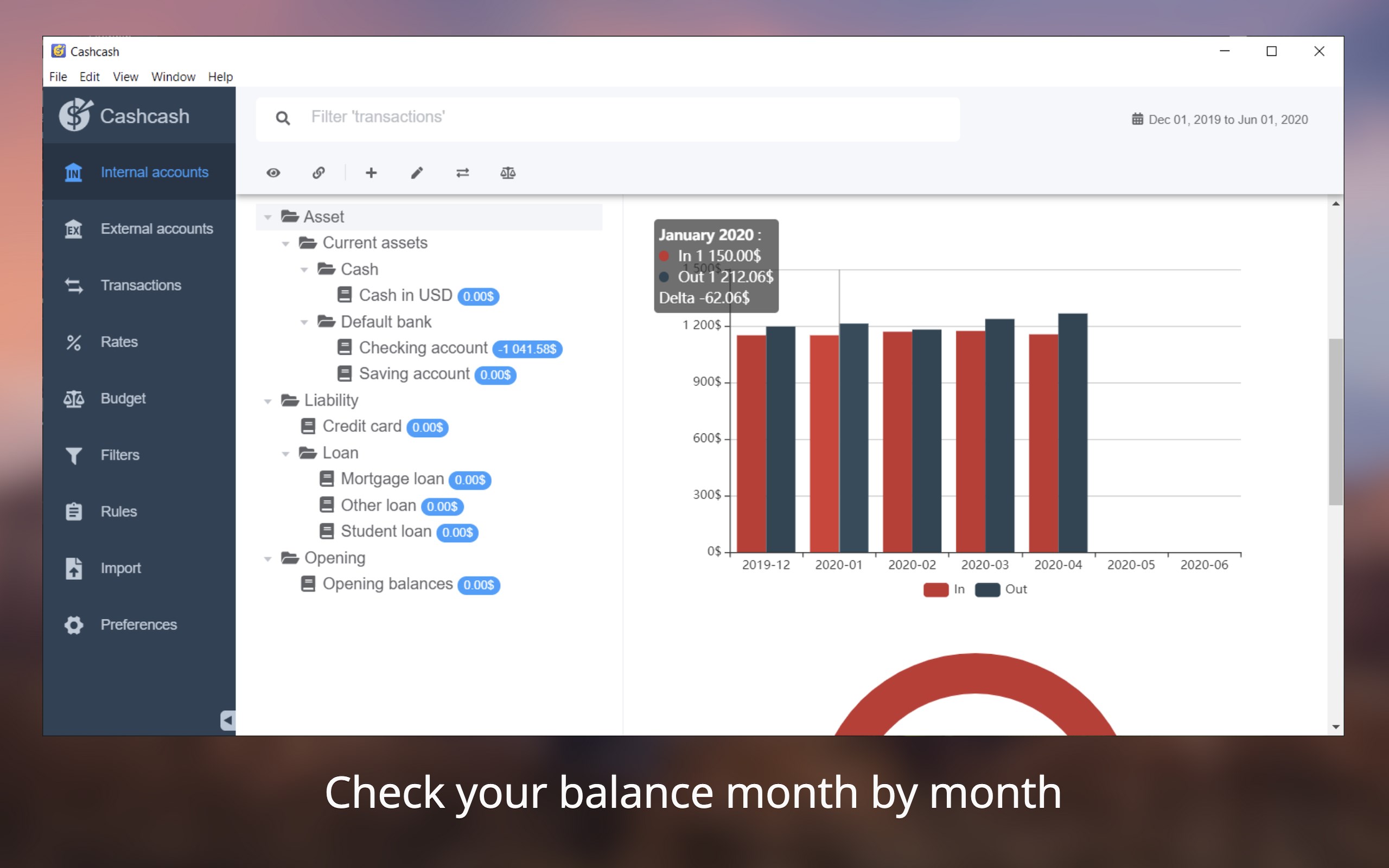 Take decisions based on visual feedback. Graphs are the core feature of CashCash. First, you see and then you check the numbers.