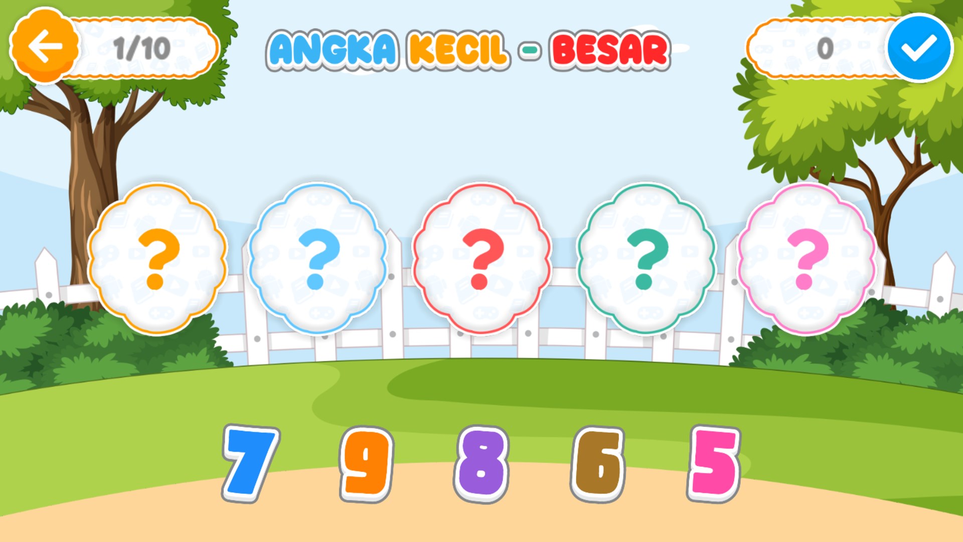 Tebak Bentuk Angka dengan GambarMencocokan Angka dengan jumlah bendaMemasangkan Angka dengan Bilangan Angka (Teks)Mengurutkan Angka dari Terkecil Hingga TerbesarMengurutkan Angka dari Terbesar Hingga Terkecil