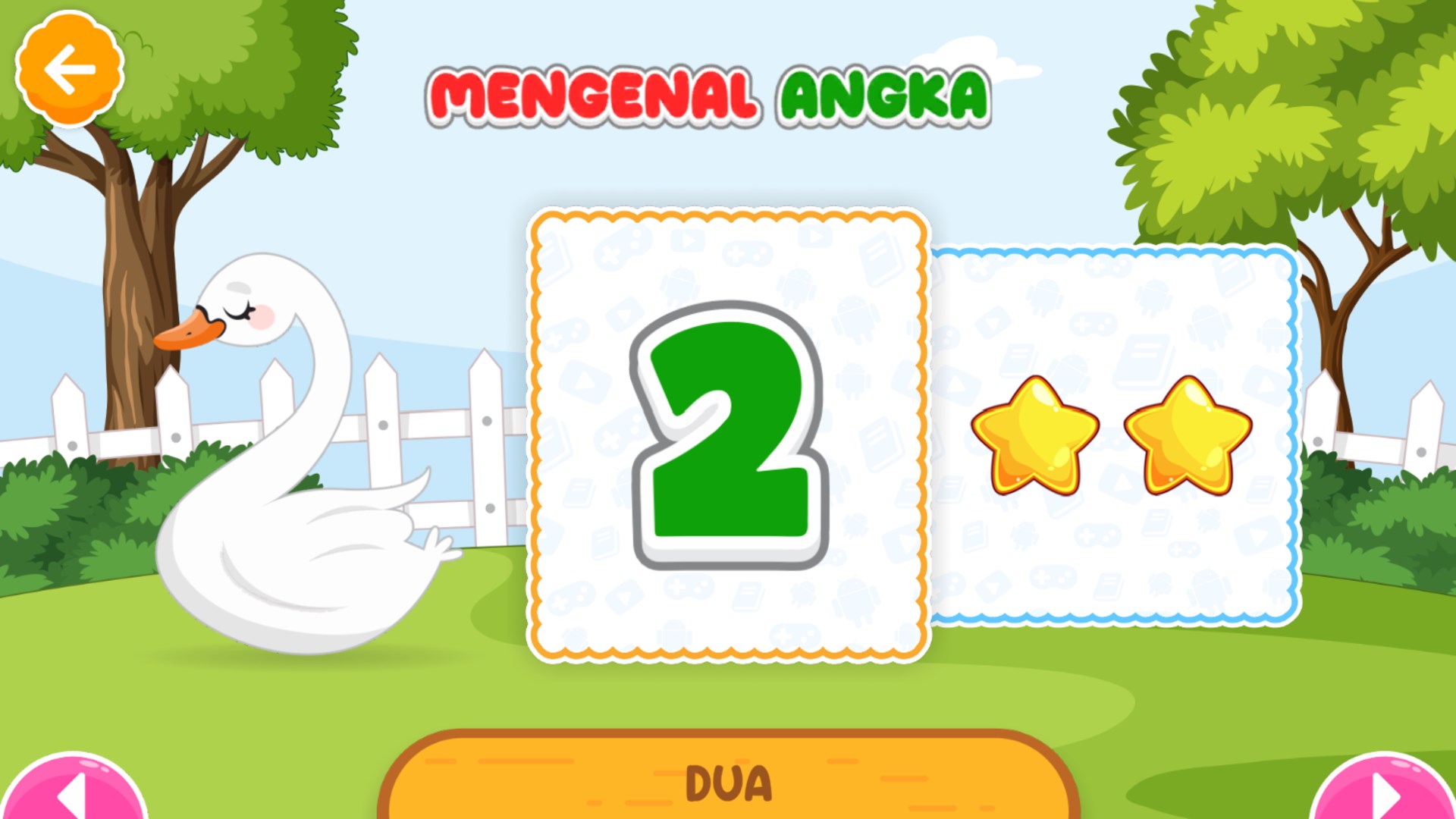 Pada pemainan ini anak-anak akan belajar mengenal angka 1 sampai 20. Konsep pembelajaran pada aplikasi ini dirancang secara interaktif disertai permainan menarik dan suara yang menarik sehingga anak-anak tidak bosan saat bermain.