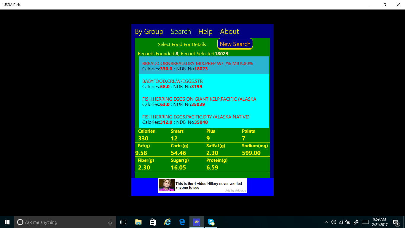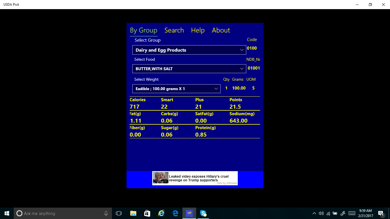 The app gives USDA SR28 Weight Watchers (Smart Points, Points Plus, Points) and Calories, Fat, Saturated Fat, Carbs, Sugar, Protein, Sodium found in what you eat.