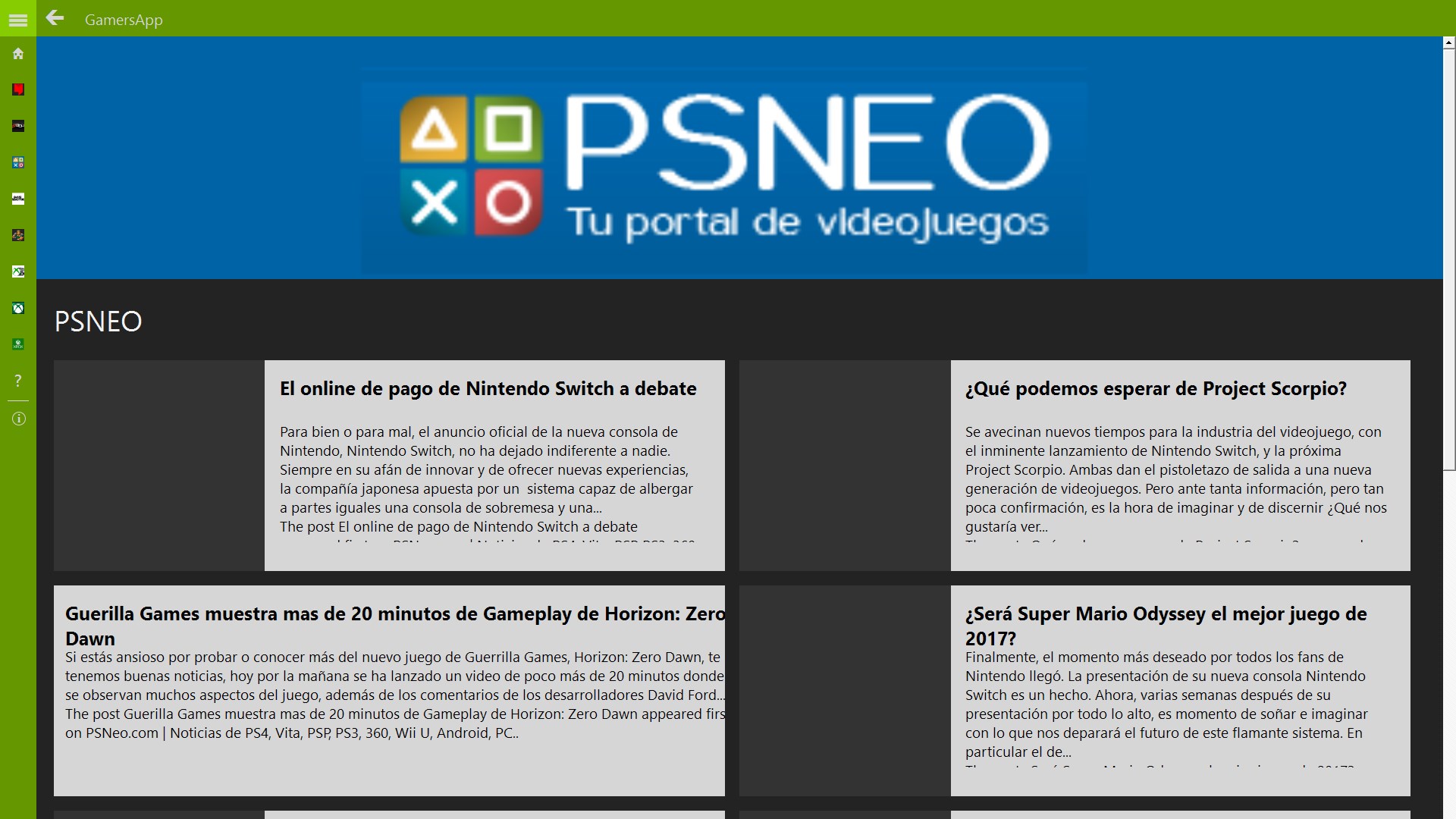 Con esta aplicación podrás acceder rápidamente a las ultimas noticias sobre videojuegos en más de 7 fuentes conocidas, como Trucoteca, 3D juegos, PSNEO y muchas más. Además podrá: