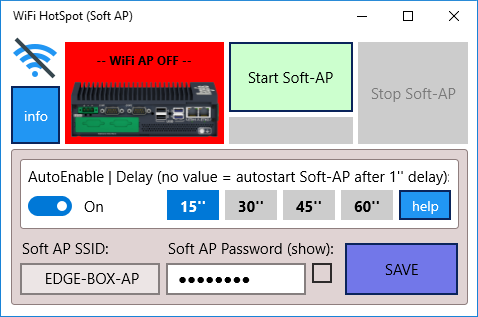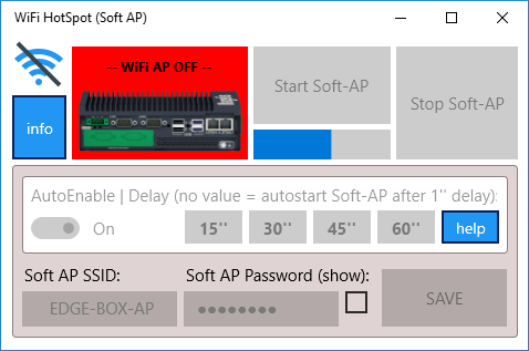 This app enables the legacy Soft Wireless AP (Access Point) mode where it is no more possible to use the hosted network. It implements a software-based, wireless access point (or hotspot-like function) with all brand-new supported wireless adapters using the WLAN Device Driver Interface (WDI) for Windows® 10. The app can be included in the startup folder of Windows 10, and an automatic delay for the Soft-AP autostart can be set. This is particularly useful in order to create a Soft-AP from a "blind" PC or Edge Box PC which runs without any local screen. SSID and password, as well as other settings can be saved locally and automatically loaded at the app startup.
