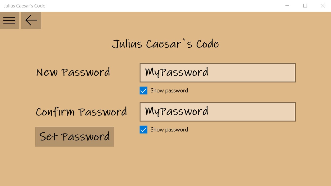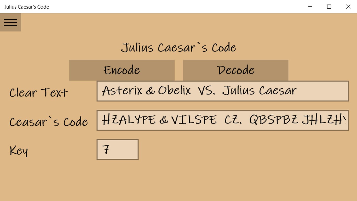Caesar`s chiffre which Julius Caesar used in the Gallic war 50 B.C as a practical App.