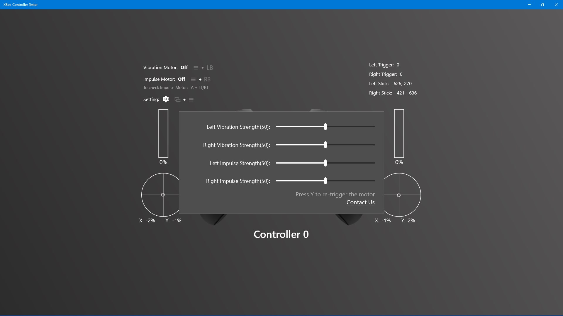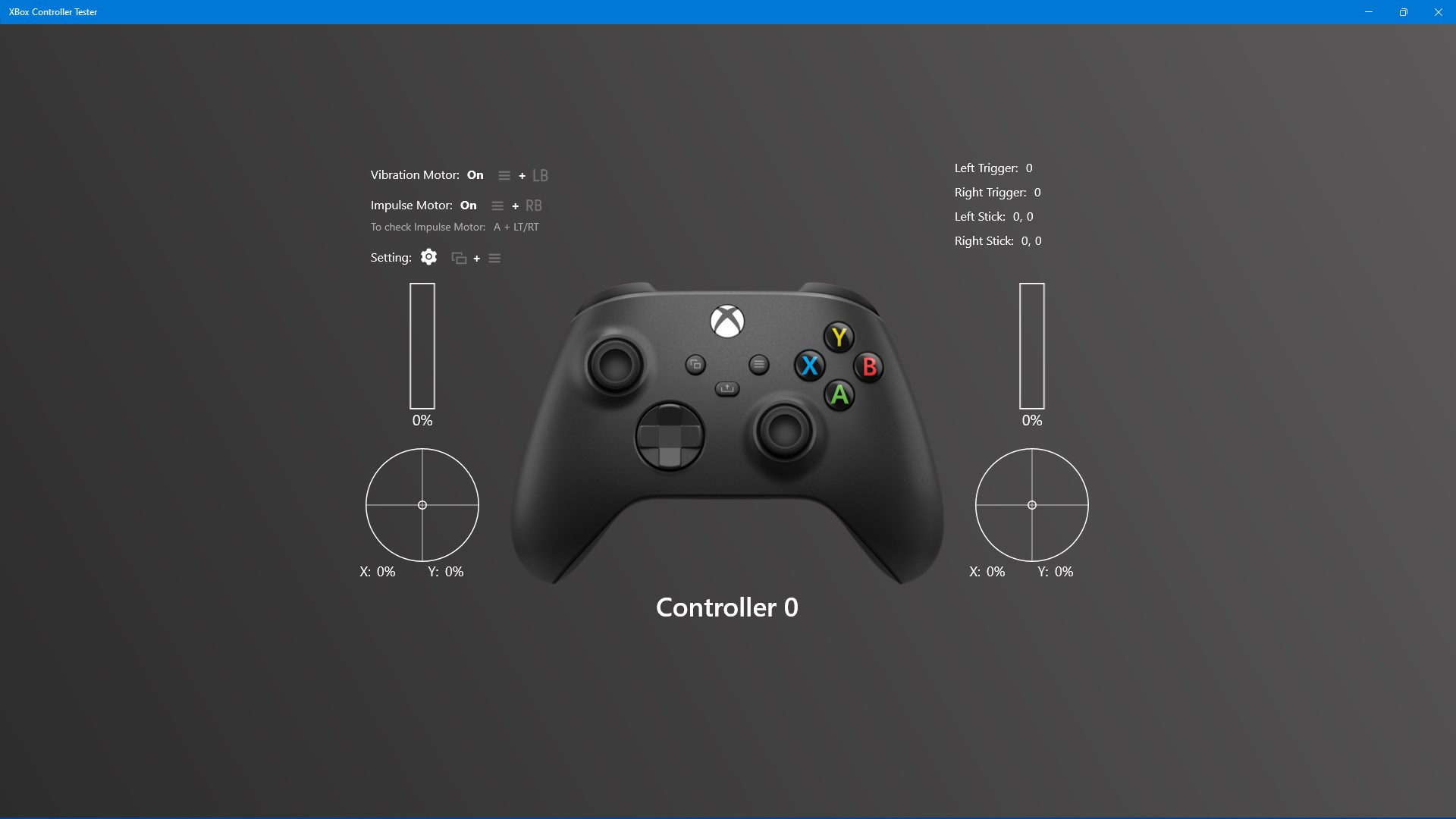 Check buttons, sticks, triggers, vibration and impulse motors, and even precisely check the 1%~100% vibration intensity of each motor.