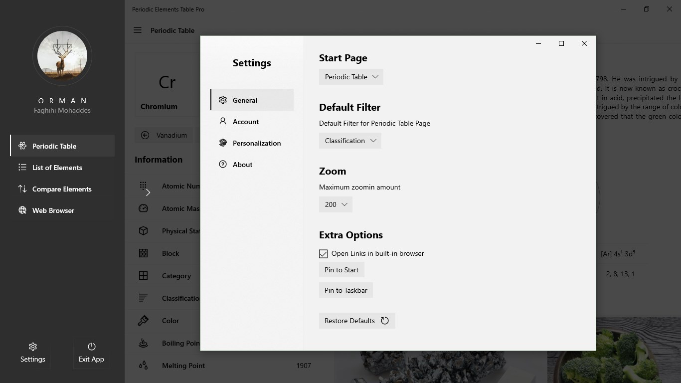 You will not suffer from the lack of a good app for the periodic table in Windows 10, and you will no longer need to use the online or physical periodic tables. You can use this app anywhere and enjoy it wherever you are. This application has been developed for students, teachers, and chemists, and has been trying to meet all their needs, though many other features will be available in future releases. To learn more about this app, I'd recommend taking a look at "App features" section.
