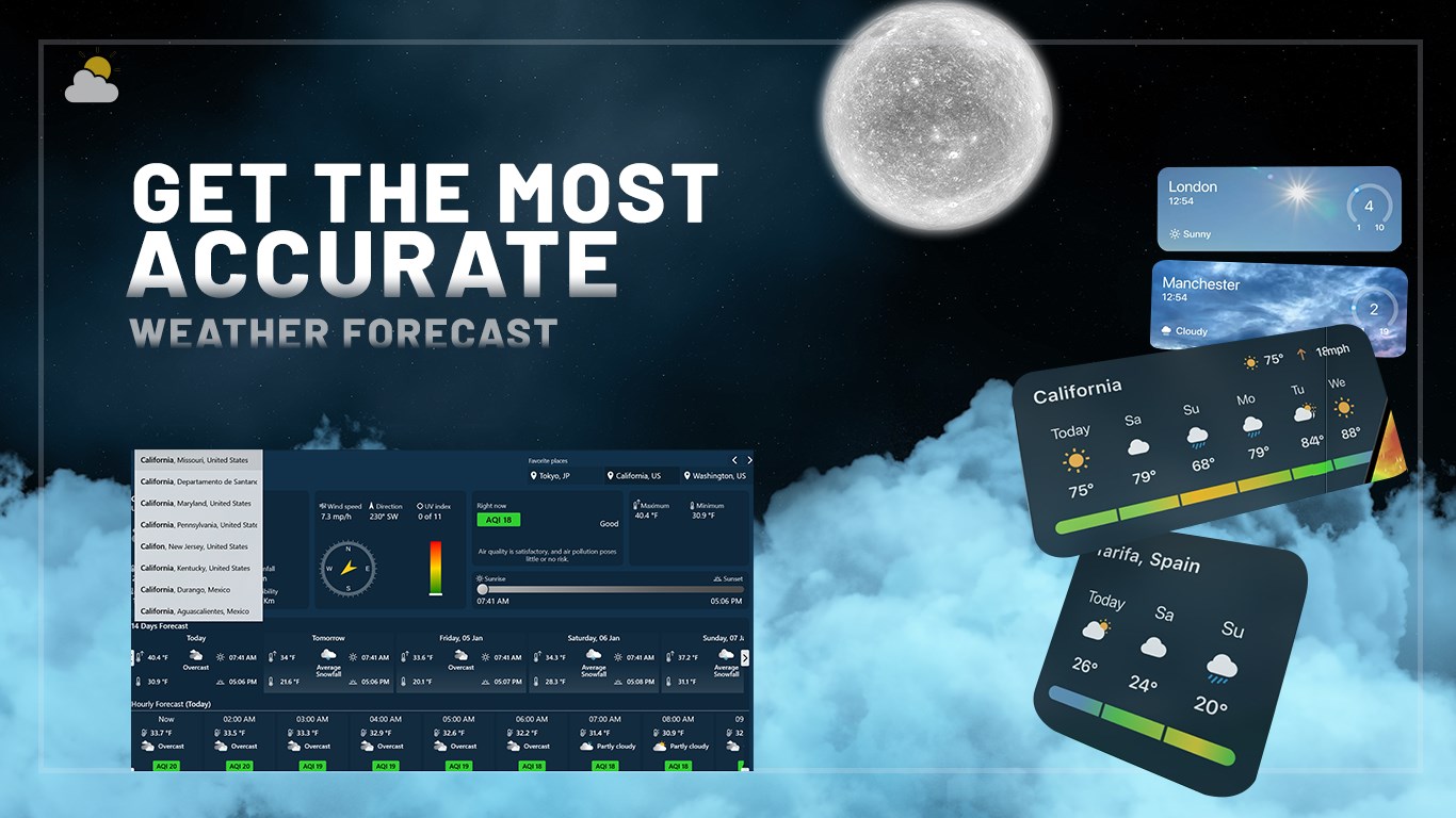 - Keep yourself well-informed with a 14-days forecast, providing an extended outlook on local weather conditions.
