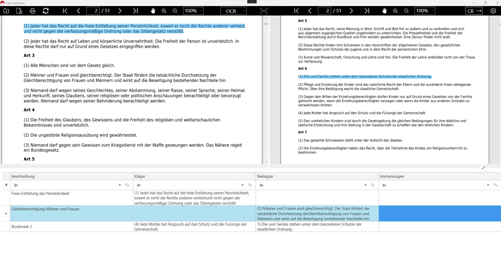 Case Relation gives you the opportunity to open one PDF file in two columns, which makes it easier to work on the file.