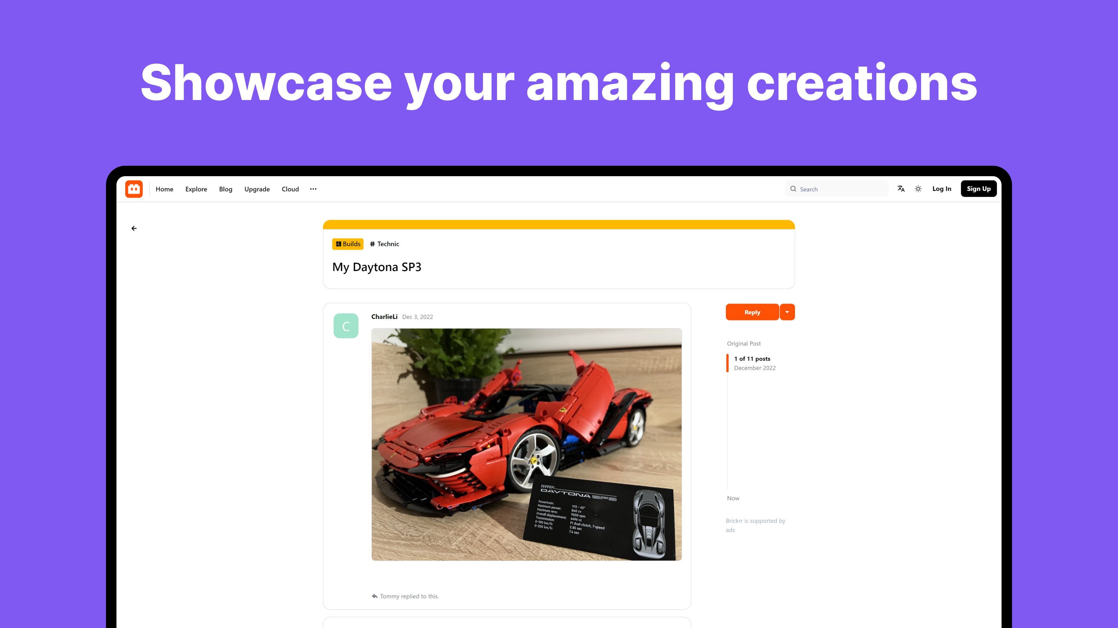 Join our friendly community of LEGO® fans worldwide on the ultimate social network for builders. Immerse yourself in news, creativity, and connections. Engage, share, and be inspired by the magic of LEGO®!