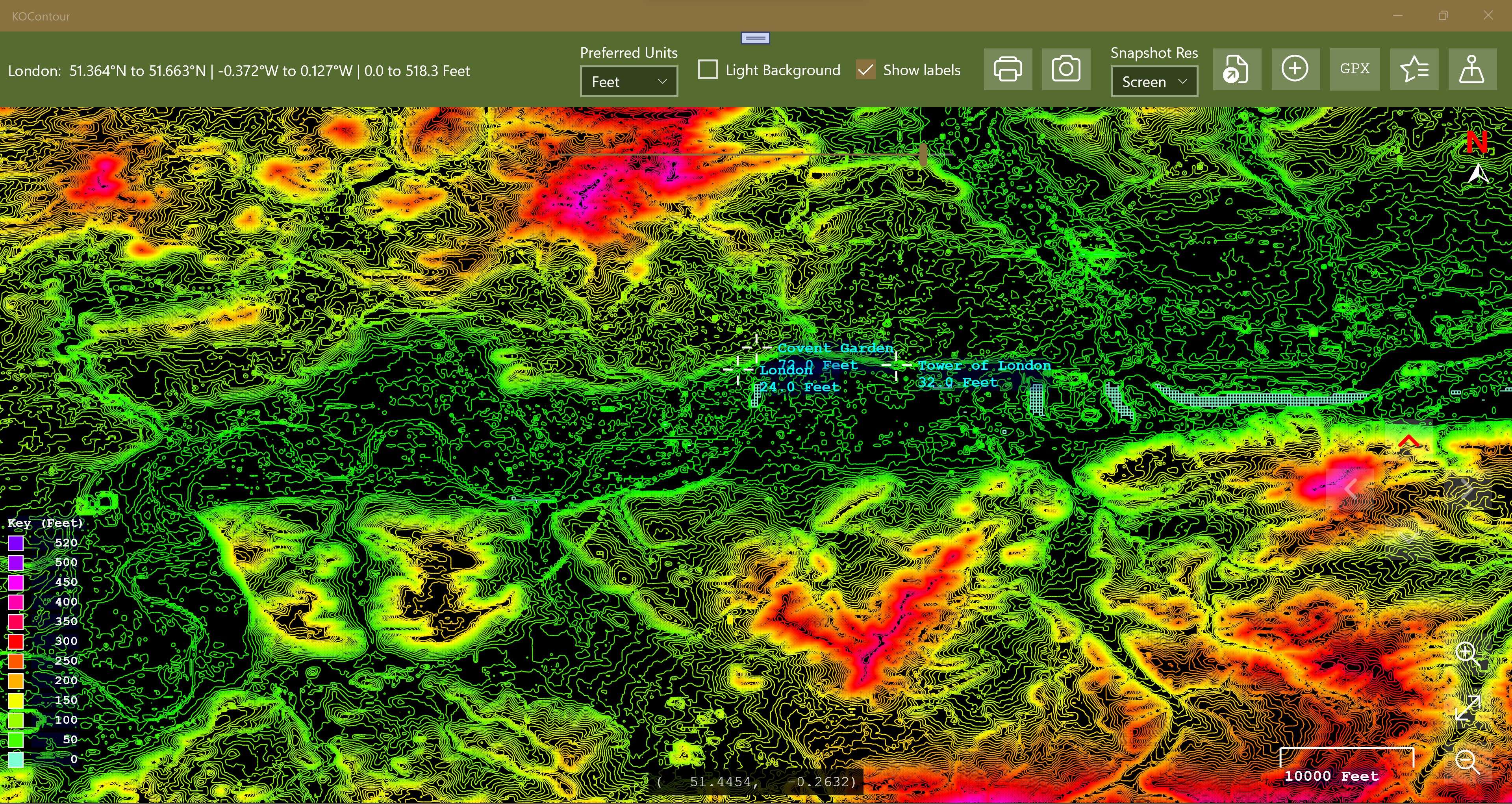 Auto height scale generationAuto distance scale generationReads tab, and comma, separated input files, detecting columnsAdjustable number of contour levelsEasy to add and edit new place markers