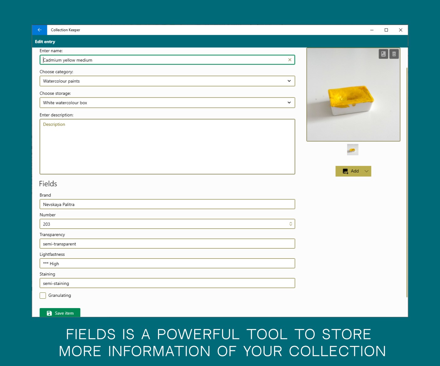 Collection Keeper enables you to quick and easy organize information of collections and things: