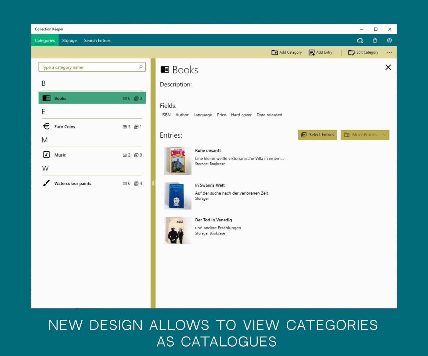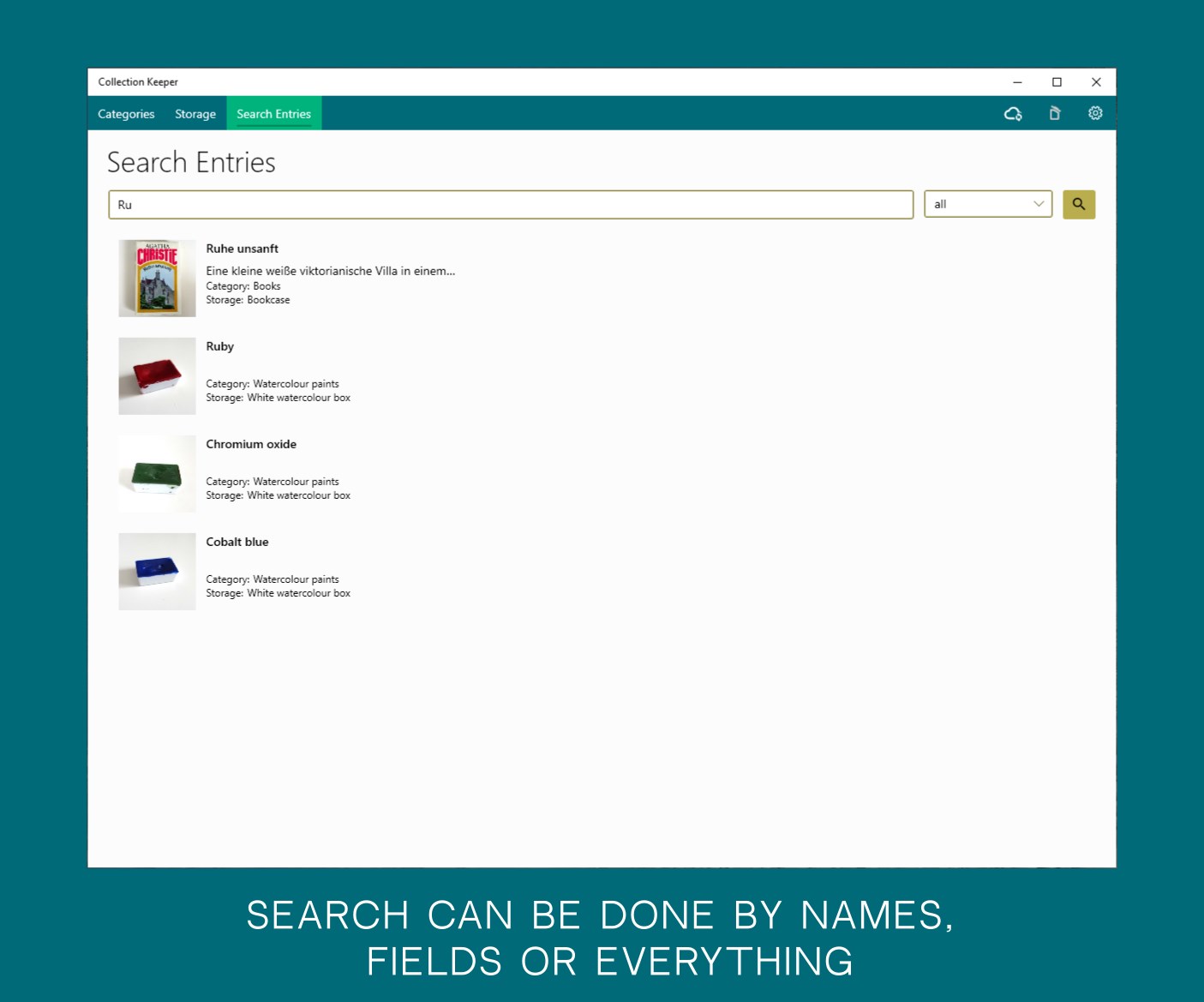 - Organize different kind of things such books, films, music, clothes, games, etc. Sort them by categories and storage. It gives you great resources to view your collections by different ways: by categories, storage of by search.