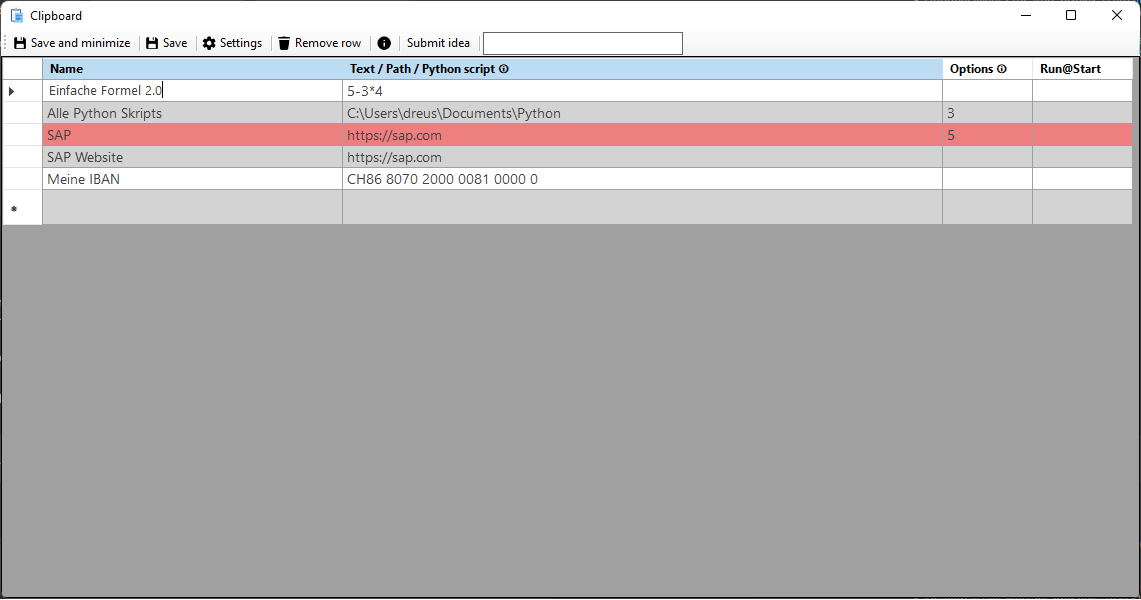 Clipboard App ist eine Anwendung um häufig genutzte Texte mit zwei Klicks in die Zwischenablage kopieren zu können. Ebenfalls können Inhalte von Dateien gelesen und kopiert werden, aber auch ganze Dateien können mit zwei Klicks in die Zwischenablage kopiert werden.
