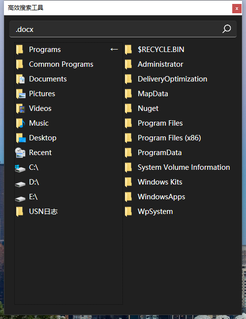 A very useful and efficient search tool, which supports multiple search modes such as file browsing, fast search, full search of USN logs, and network search.