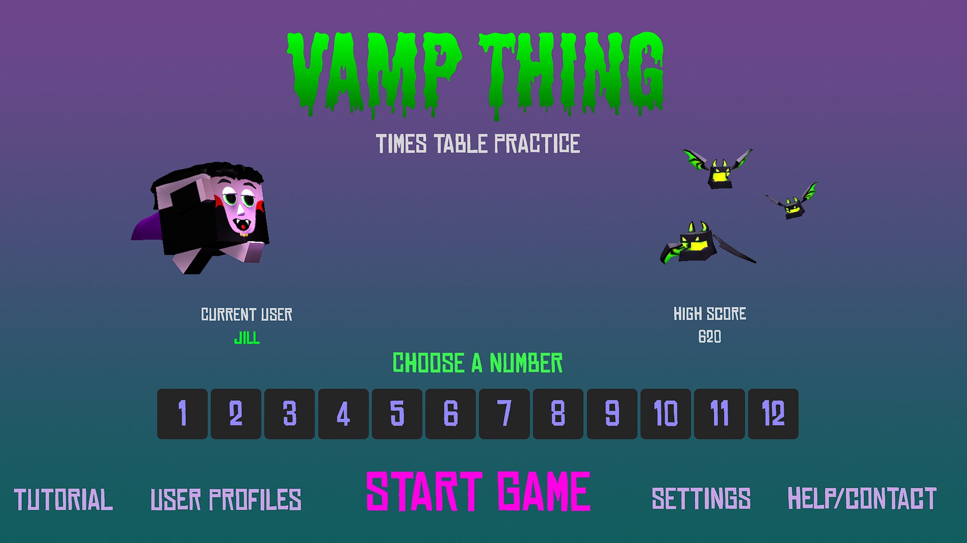 Vamp Thing is a 3d platformer game designed to make the process of practicing times tables much more fun and engaging.