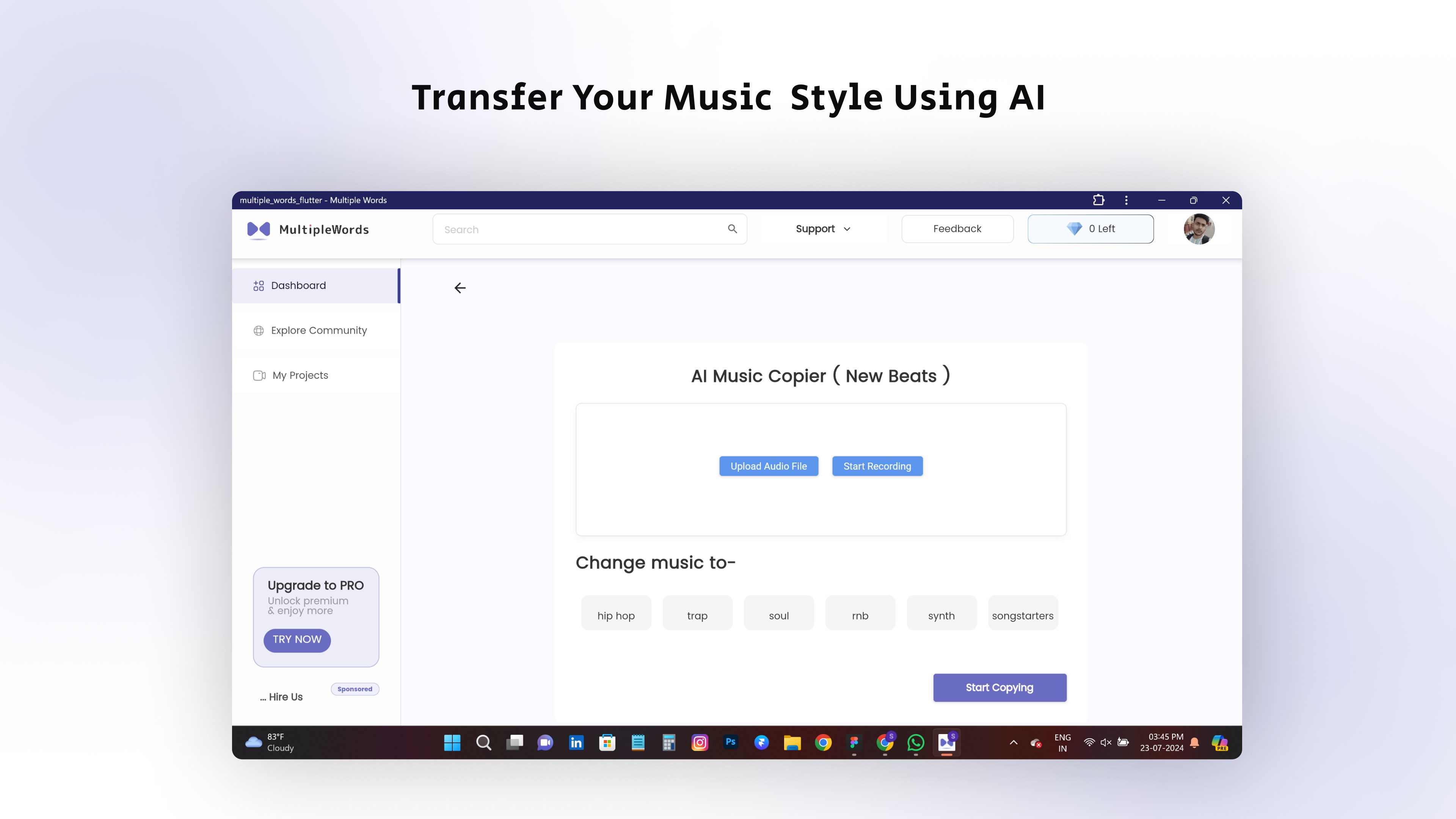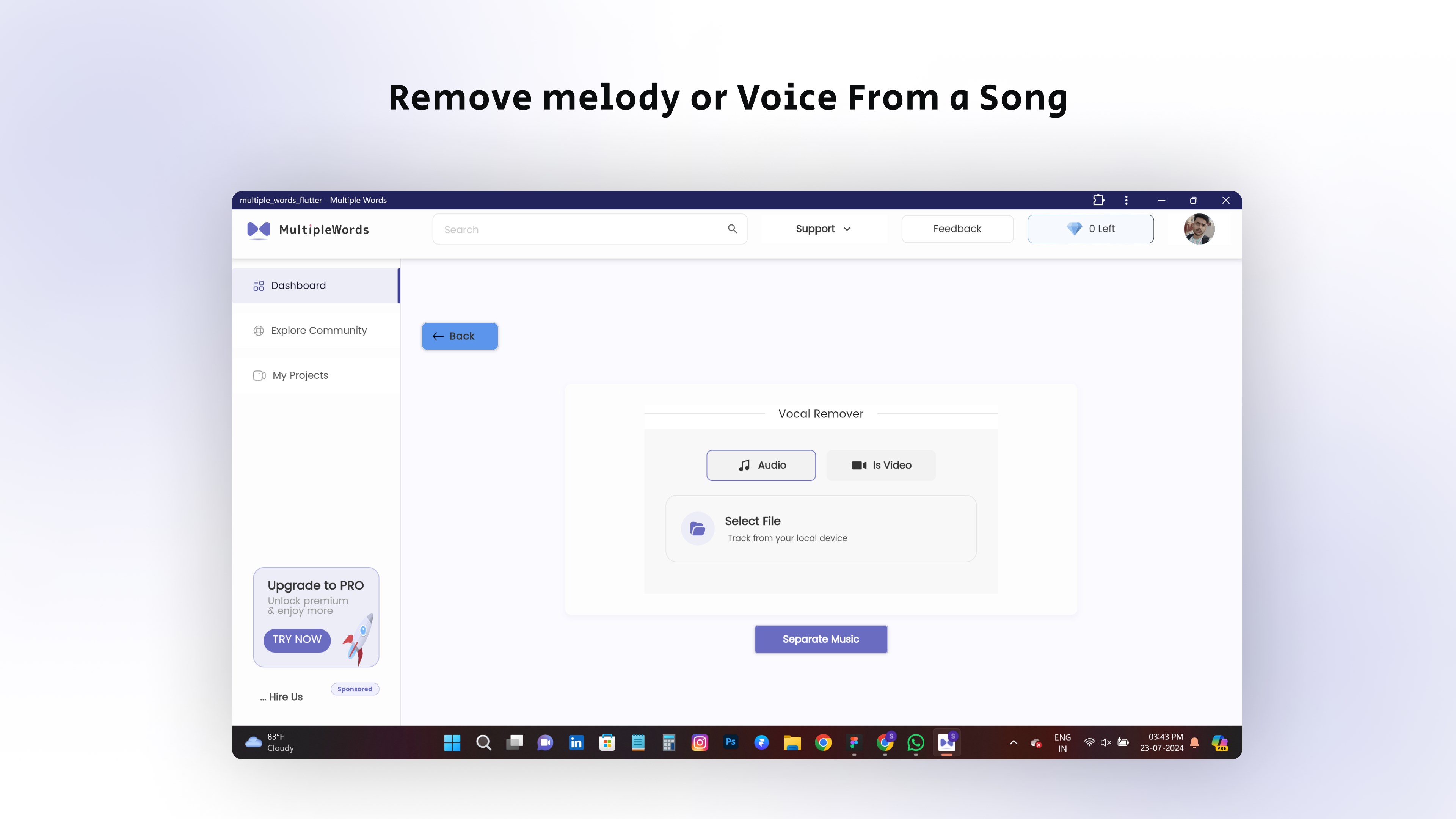 AI Vocal Remover ( Music Separation )AI Text to video generatorAI shorts Generator AI Viral video clip cuttor AI music generator AI Music Copying AI In-Depth researcherAI Video TranslatorAI image generator ( Stable diffusion 3 )AI subtitle generator AI video morpher ( Morphing between 4 images )AI style transfer ( Transfering style from one image to other )AI image background removerAI image upscalerAI video background removerAI image to dance generator