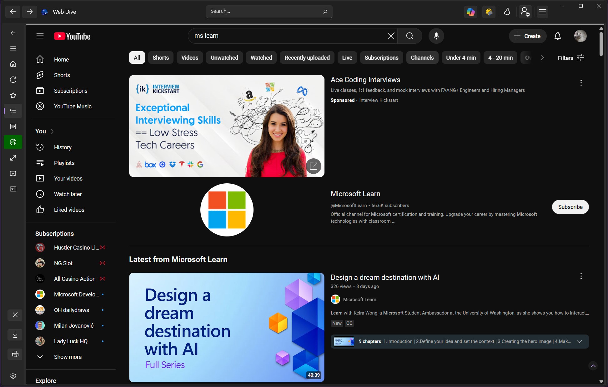This is the most straightforward and secure way to get Web Dive.Step 1: Open the Microsoft Store