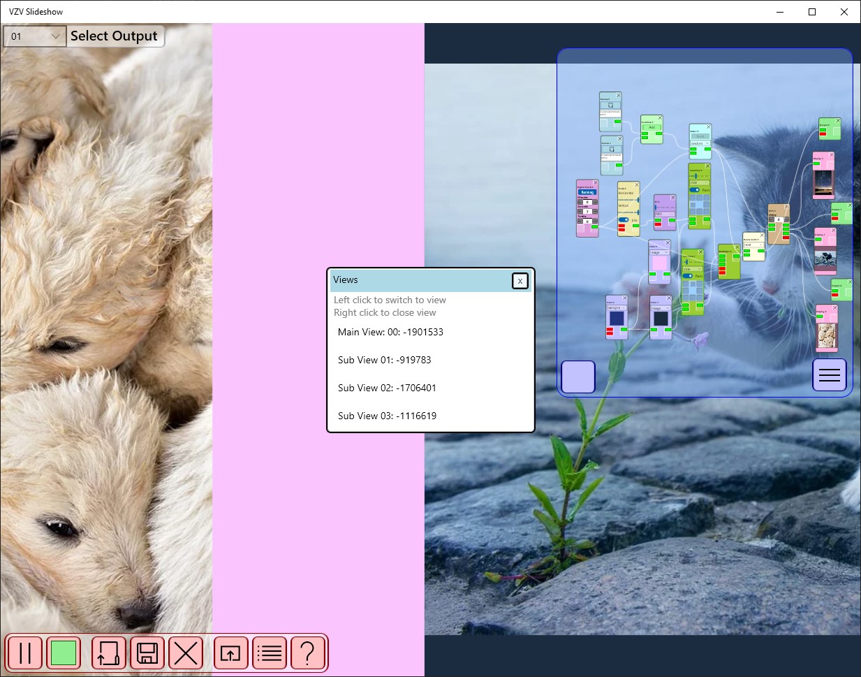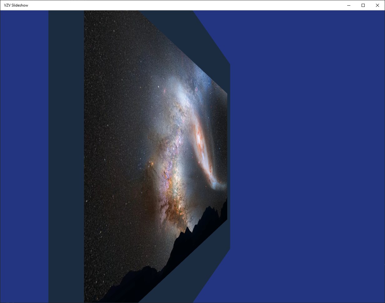 VZV Slideshow is a simple but powerful app for displaying automated slideshows of images stored on your computer and network. You can create multiple views on one or more screens to display images from any folders on your system and network. The slideshow is controlled by a powerful node based system for maximum flexibility allowing different views to have different colors, transitions, scaling and update at different rates. Great for using one or more screens to enjoy your photo or art collection, or for simple advertising or display.
