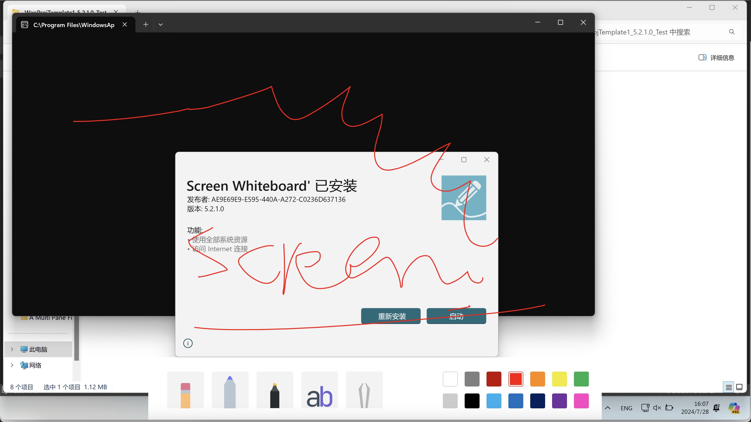 Screen Whiteboard — a transparent white board on top of your screen. You can draw with a pen or create text blocks on it.