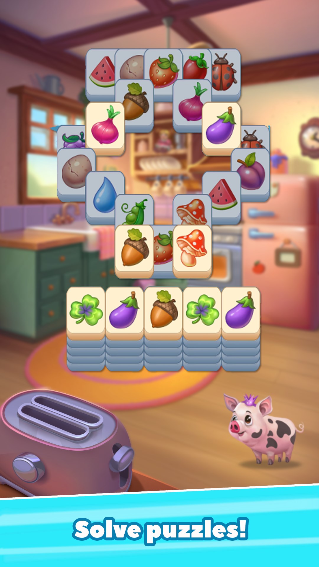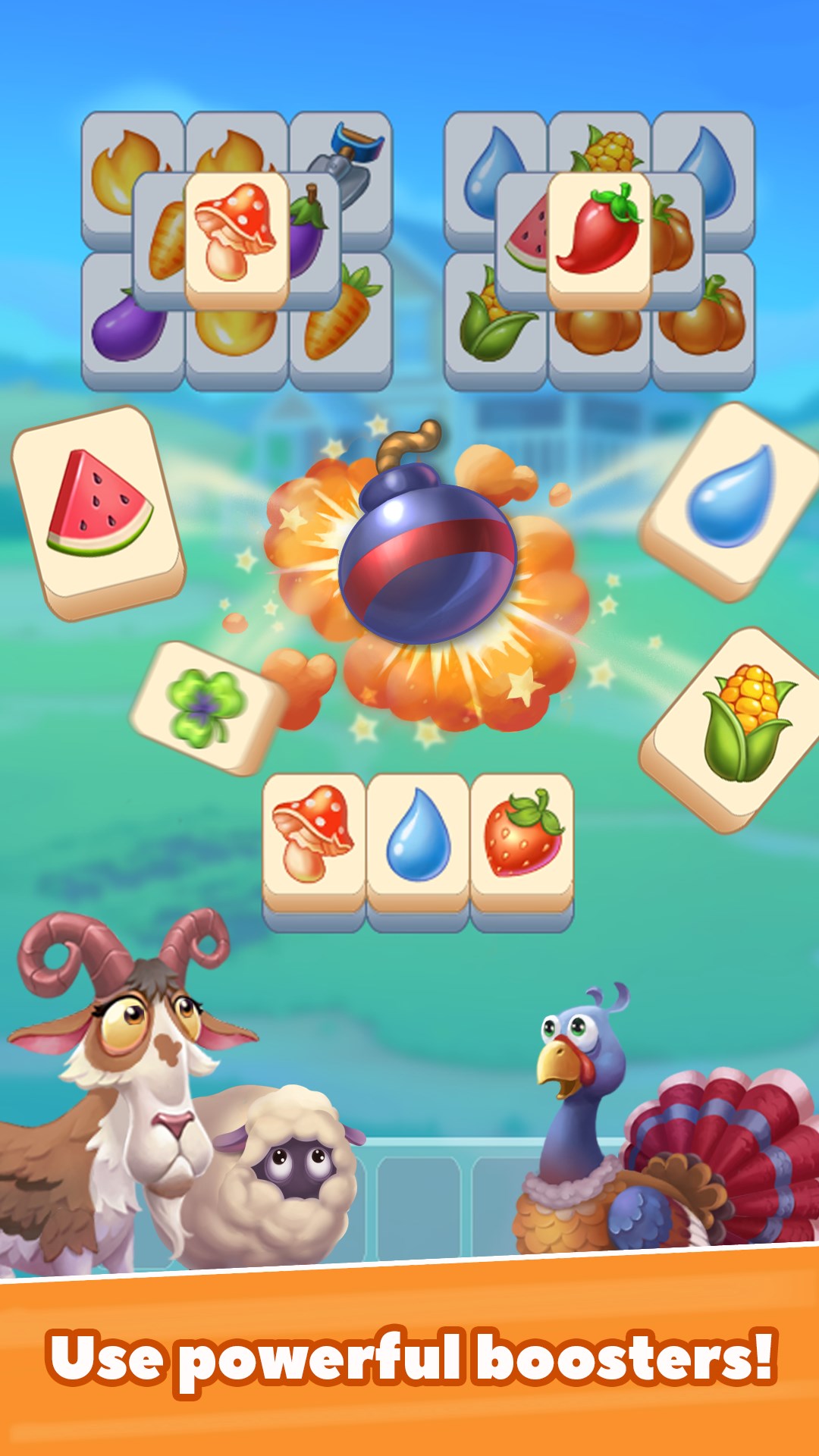All you need is to find identical tiles on the field and collect them. Clear the field to the end, and you win!