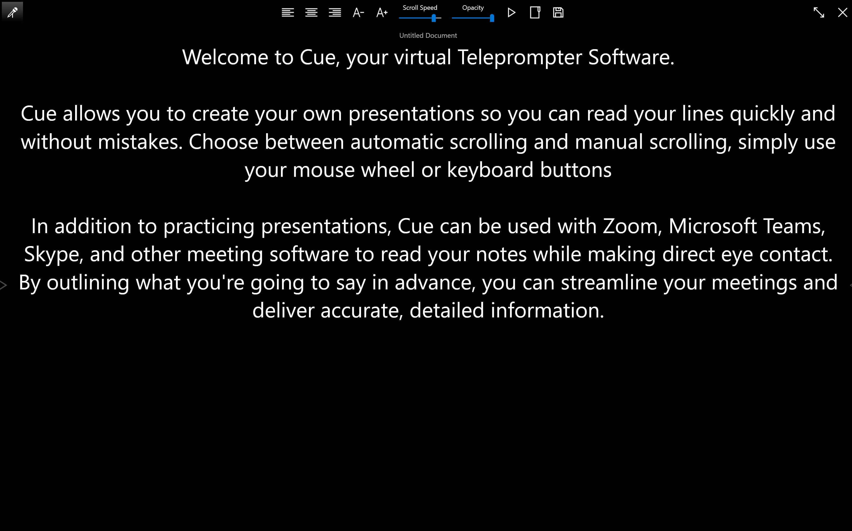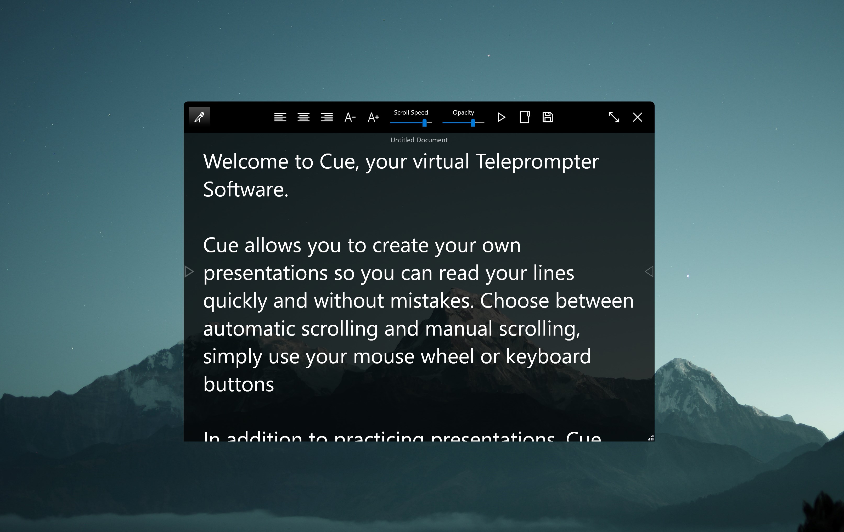 Enhance your presentations, speeches, and video recordings with Easy Virtual Teleprompter, a user-friendly application designed to simplify the teleprompter experience. This tool transforms your device into a virtual teleprompter, allowing you to read scripts or notes seamlessly while maintaining eye contact with your audience. With intuitive controls and customizable settings, Easy Virtual Teleprompter provides a hassle-free solution for delivering polished and confident performances.
