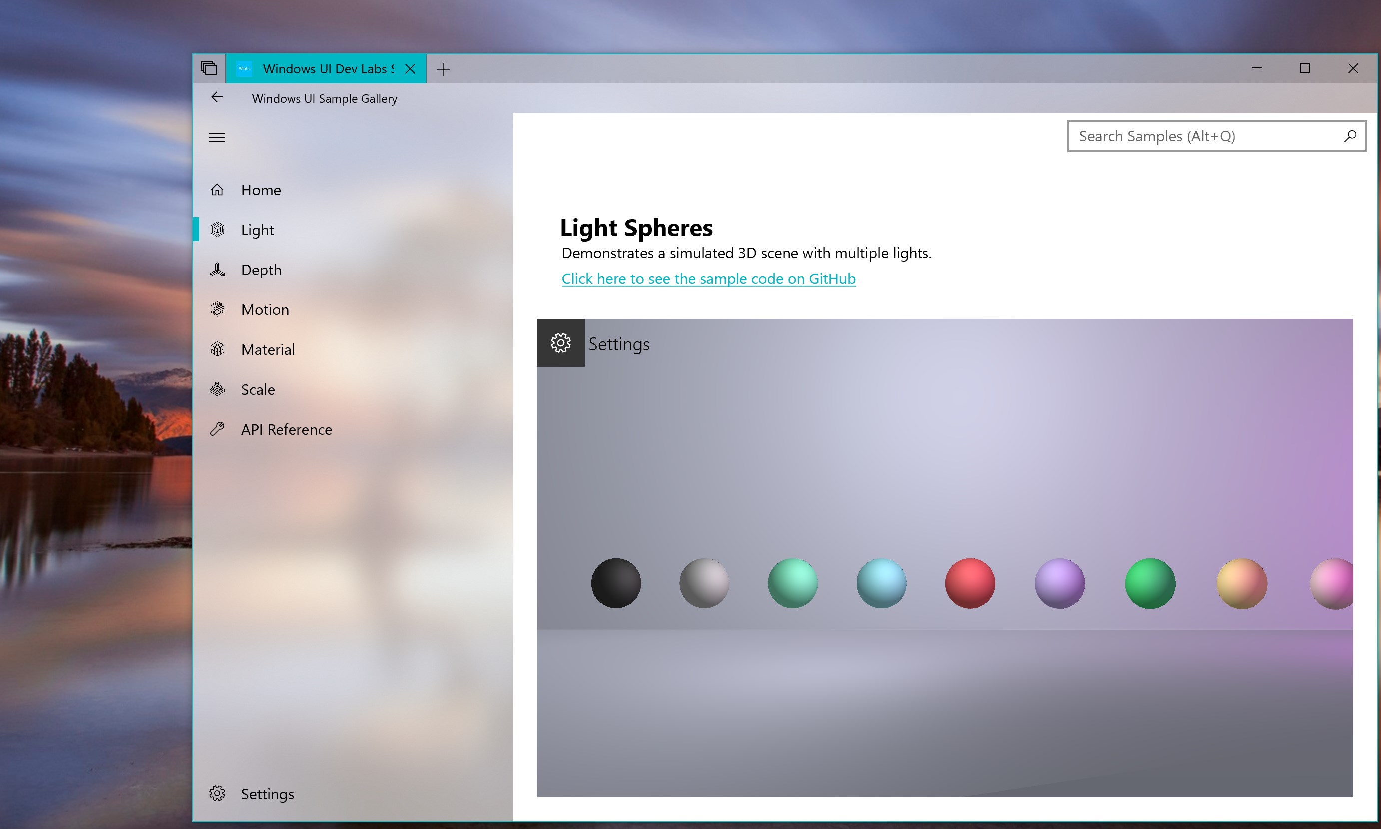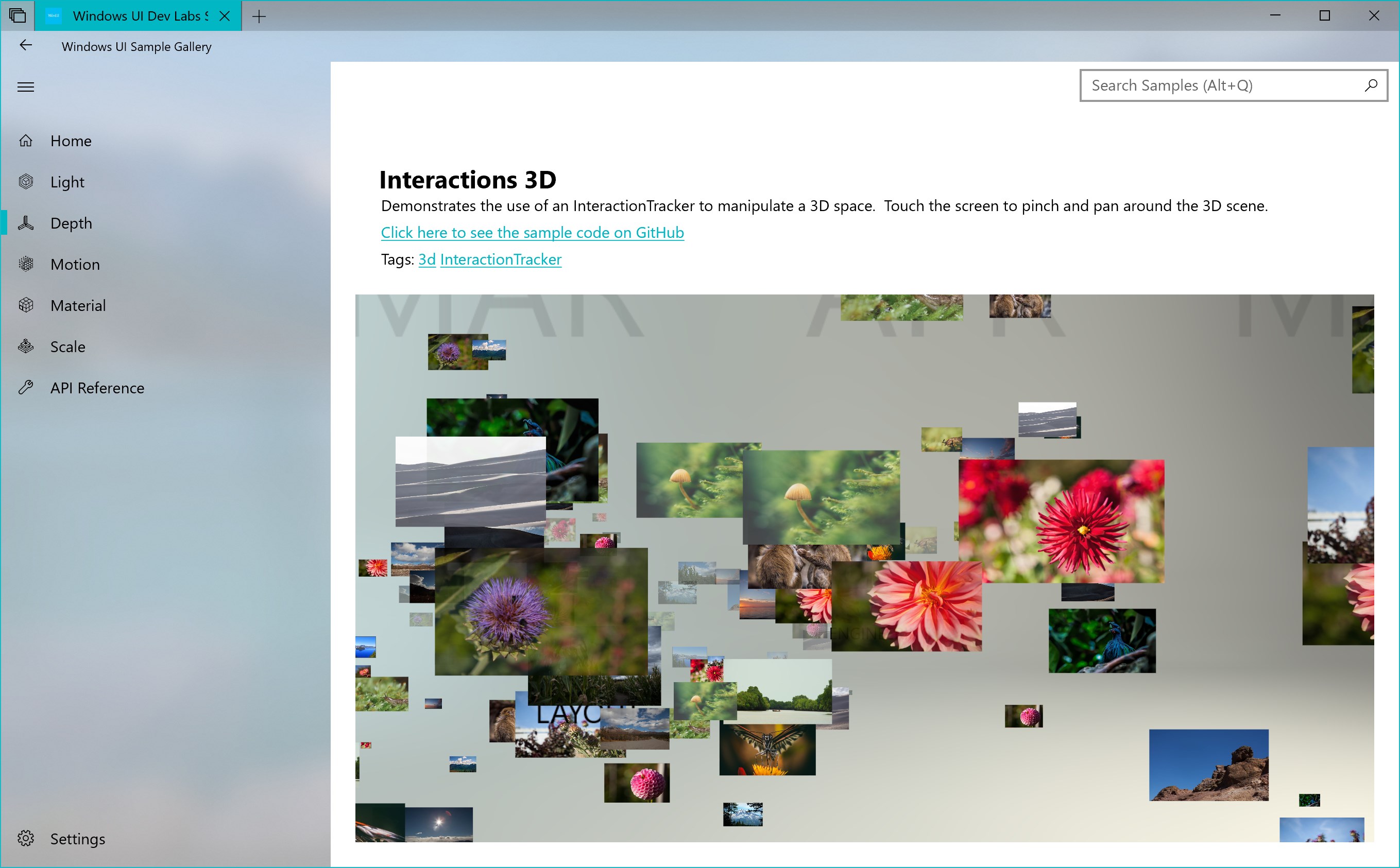All of the samples shown here are available on Microsoft's Windows Composition Samples repo on GitHub - https://github.com/Microsoft/WindowsCompositionSamples