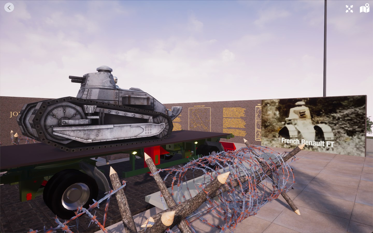 • Timeline Tower: Discover an 80-foot tall virtual timeline featuring 50 key WWI events, each narrated for an in-depth historical understanding.