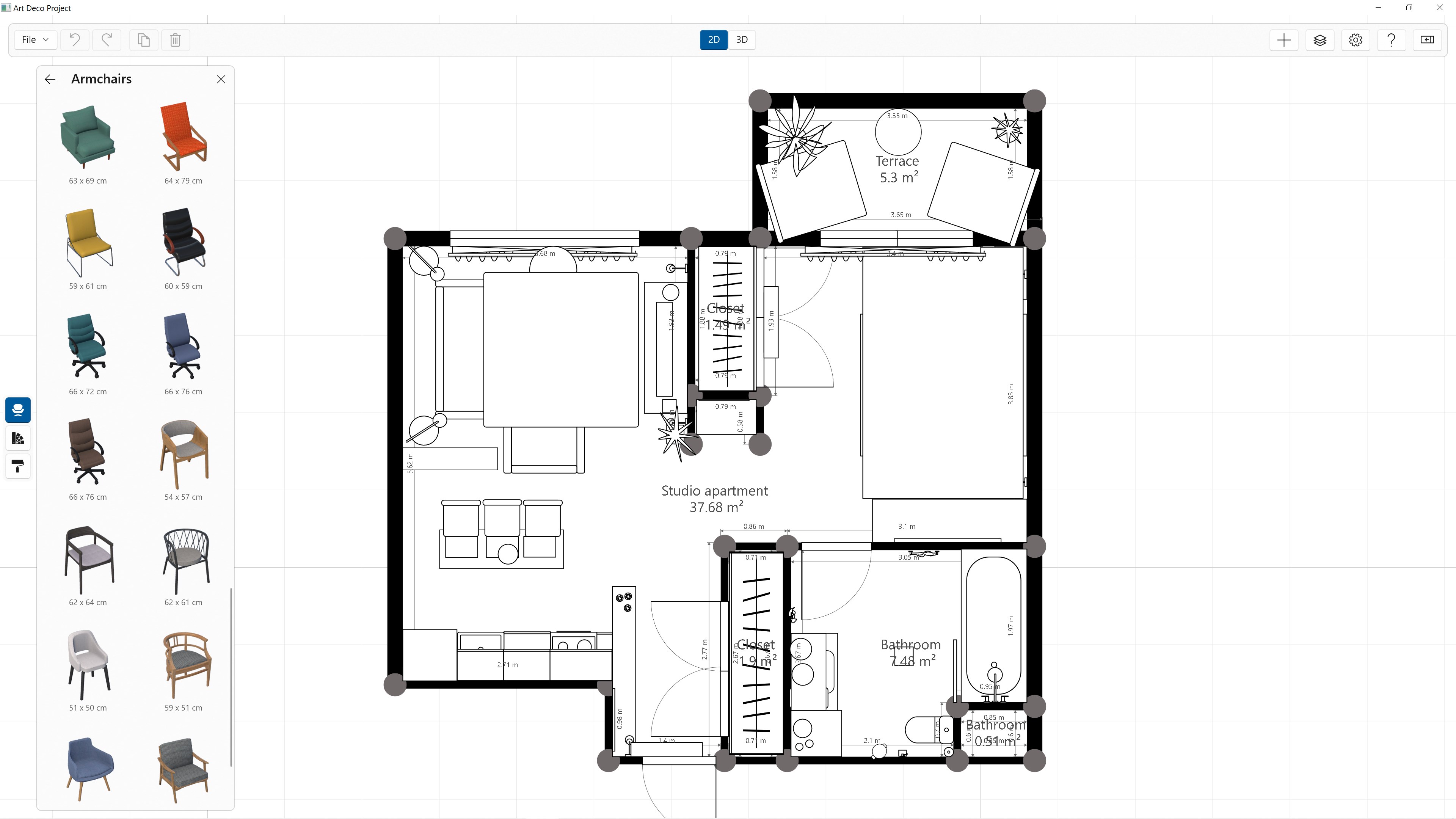 ● Furniture: select and add sofas, armchairs, chairs, tables, sideboards, desks, console tables, coffee tables, cabinets, drawers, and more. Adjust the width, depth, and more.