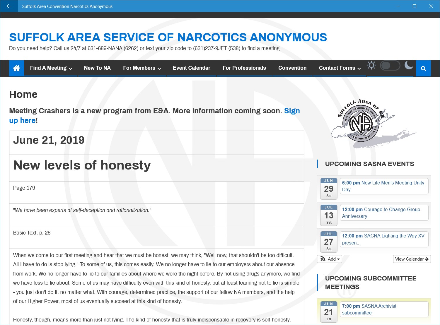 Official Windows 10 app for the Suffolk Area Convention of Narcotics Anonymous