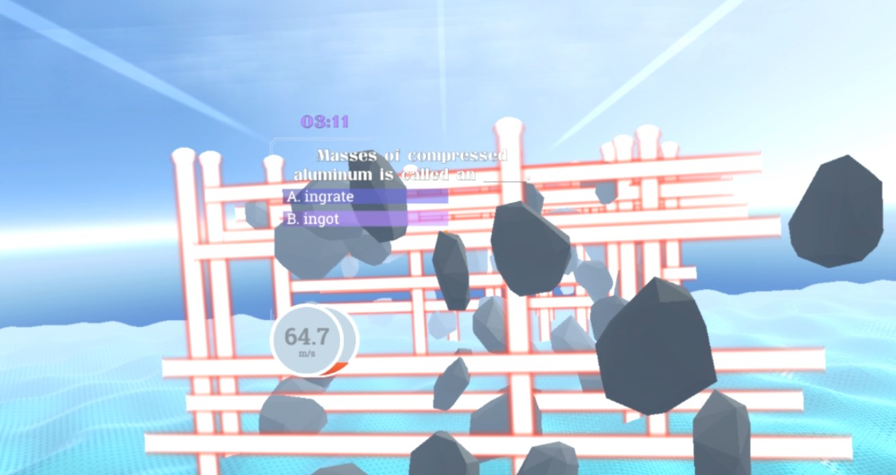 Fly through pleasant pastel clouds as you twist and turn, diving through hoops in the sky. You chart your course by soaring through the ring with the correct answer to science questions posed in the clouds.