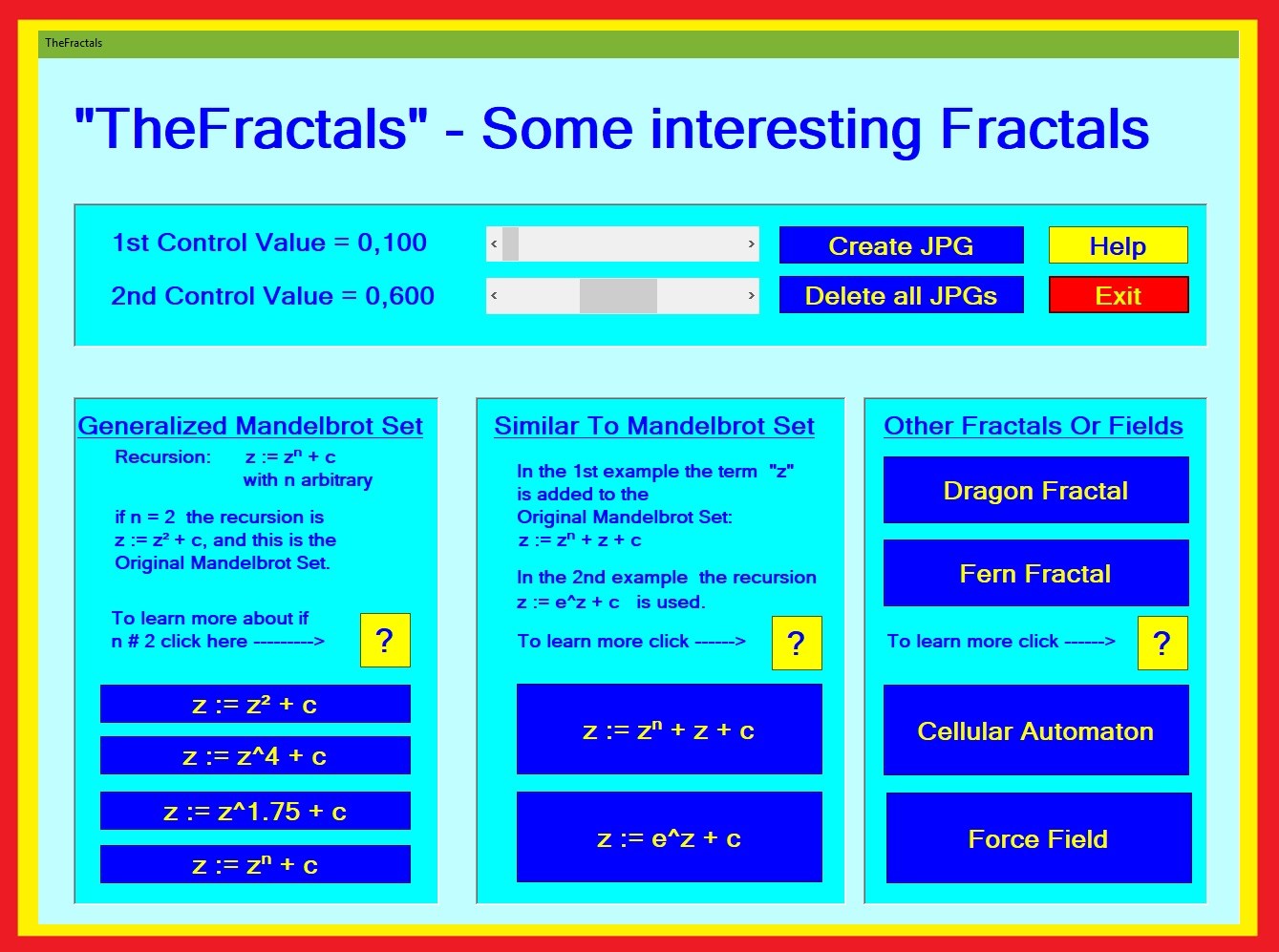 is implemented, where n = 2. In the “TheFractals” app, n > 2 and can also be a non-integer! This creates extremely interesting fractals that you wouldn't see otherwise.