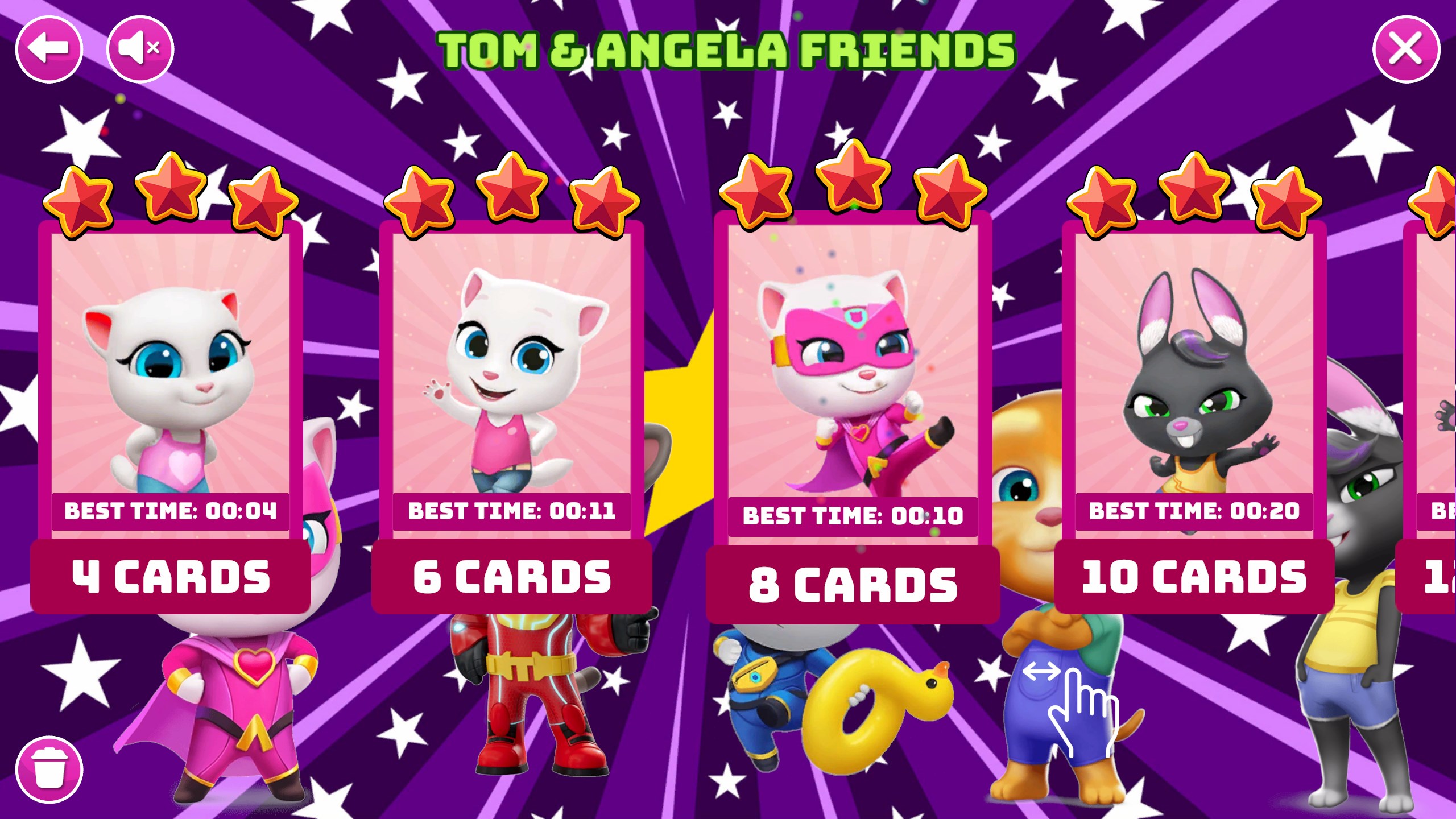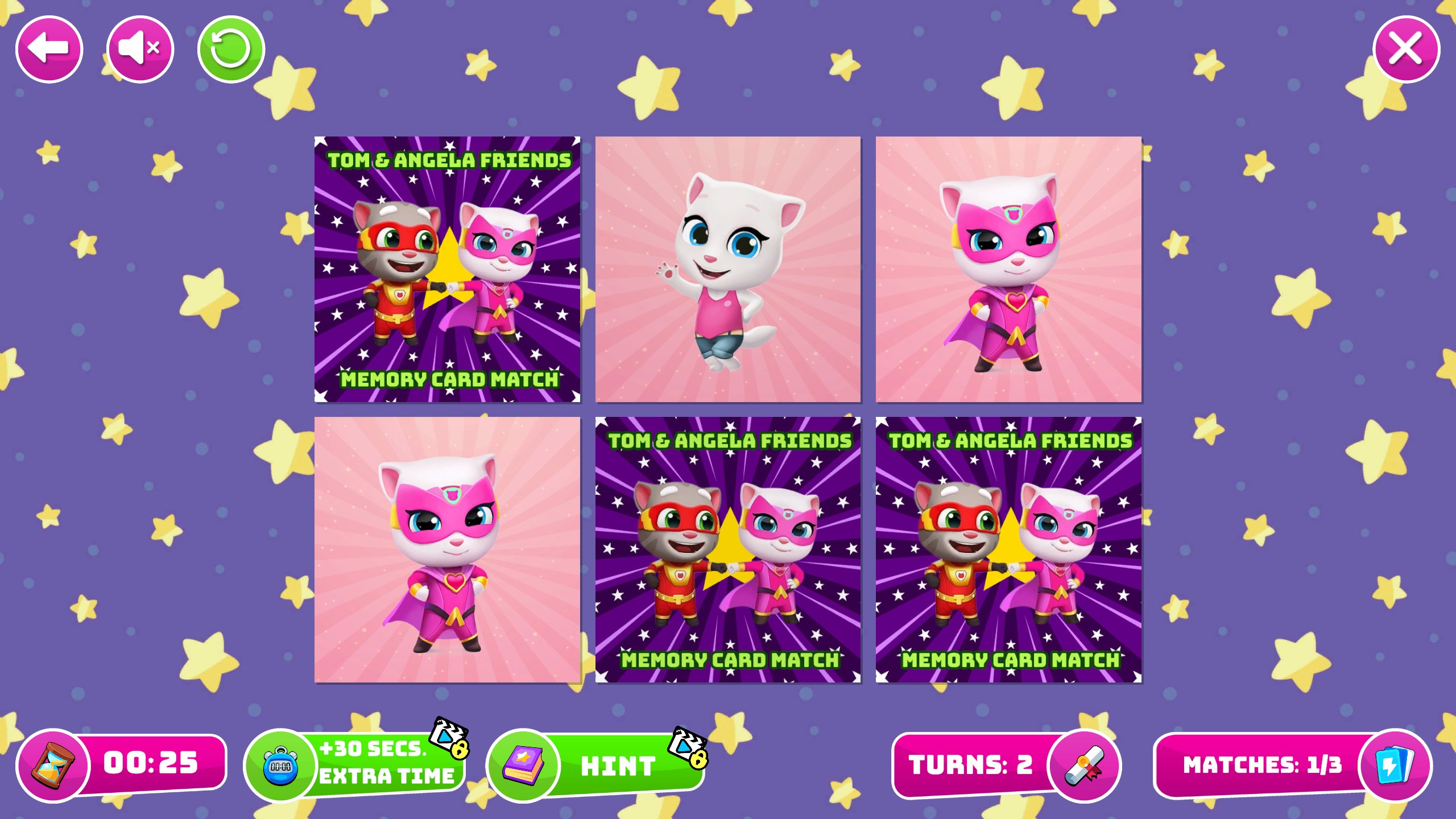 Dozens of levels with increasing difficulty.Adorable cards featuring Tom and his friends.Fun and relaxing gameplay for all ages.Great for enhancing memory and concentration skills.