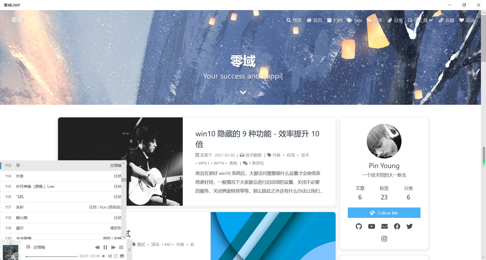 零域博客官方UWP客户端,分享零的音乐,软件,教程,快乐。内置音乐板块哦!