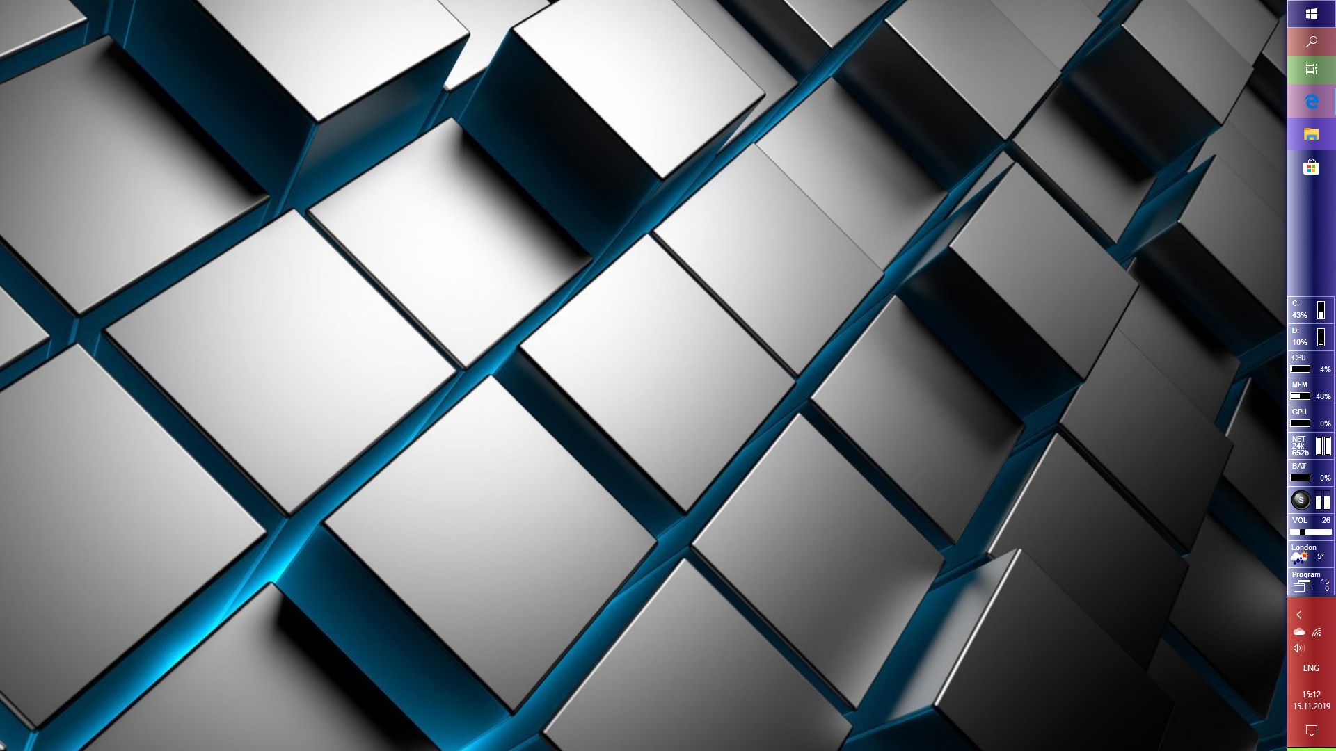 A set of mini-programs on the taskbar offering monitoring of computer parameters HDD & SSD, CPU, RAM, GPU, Network, Battery, Radio, Volume, Weather and providing easy access to numerous functions of Windows OS. Lite version.